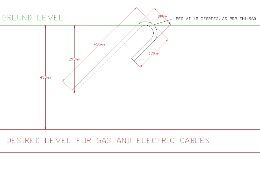 Please note: Any pegs other than 16mm thick, 380mm long with a 100mm radius and 100mm minimum return are non-compliant with EN-14960. These pegs are plain non galvanised steel and are budget rough steel pegs and may contain rust. These are not "posh pegs" pegs may exceed these measurement but not b lower.