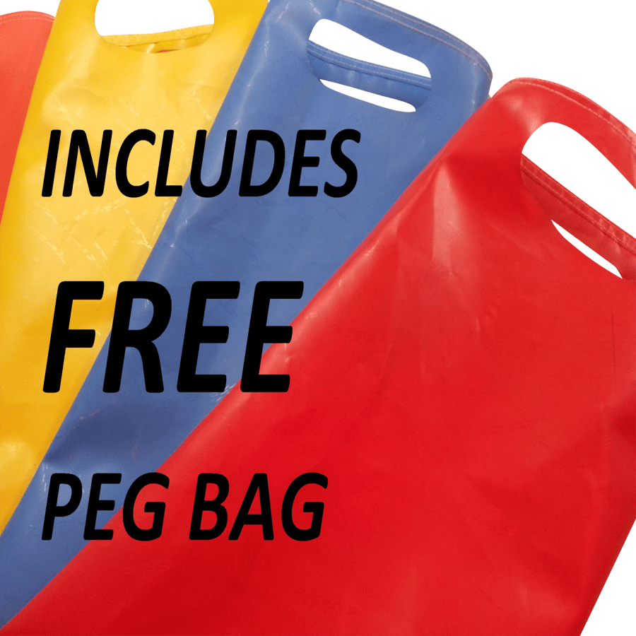 - Heavy duty steel reinforced pegs
