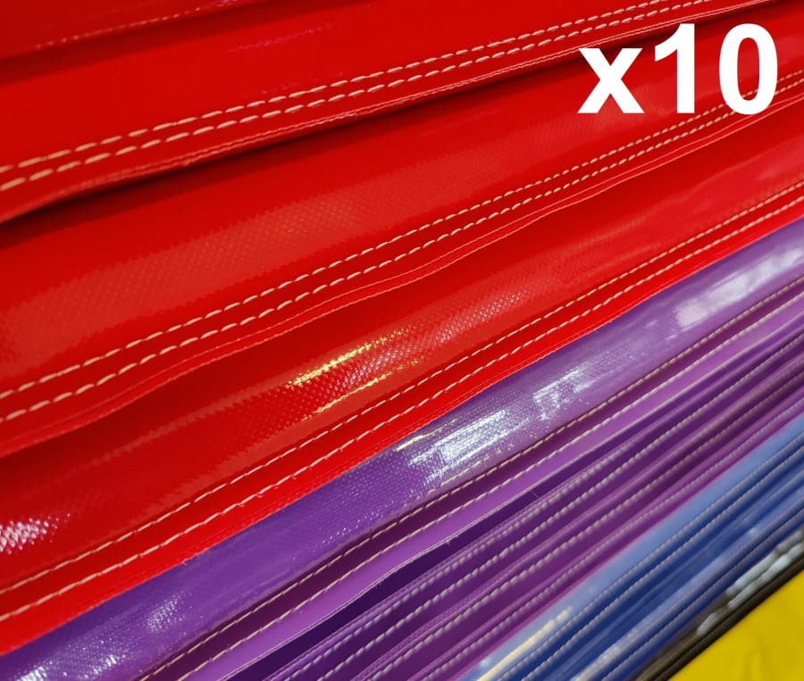 The materials we use is the exact same grade we use in full scale manufacture. Its UV stable so wont fade, 610gsm so has unbelievable strength & is treated with an anti-fungicidal solution to help keep them fresh for longer and easy to clean. The mats are sewn externally for wear protection and longevity of the product. The mats are manufactured in batches of 200 to bring the costs down through volume. We do not compromise on materials.