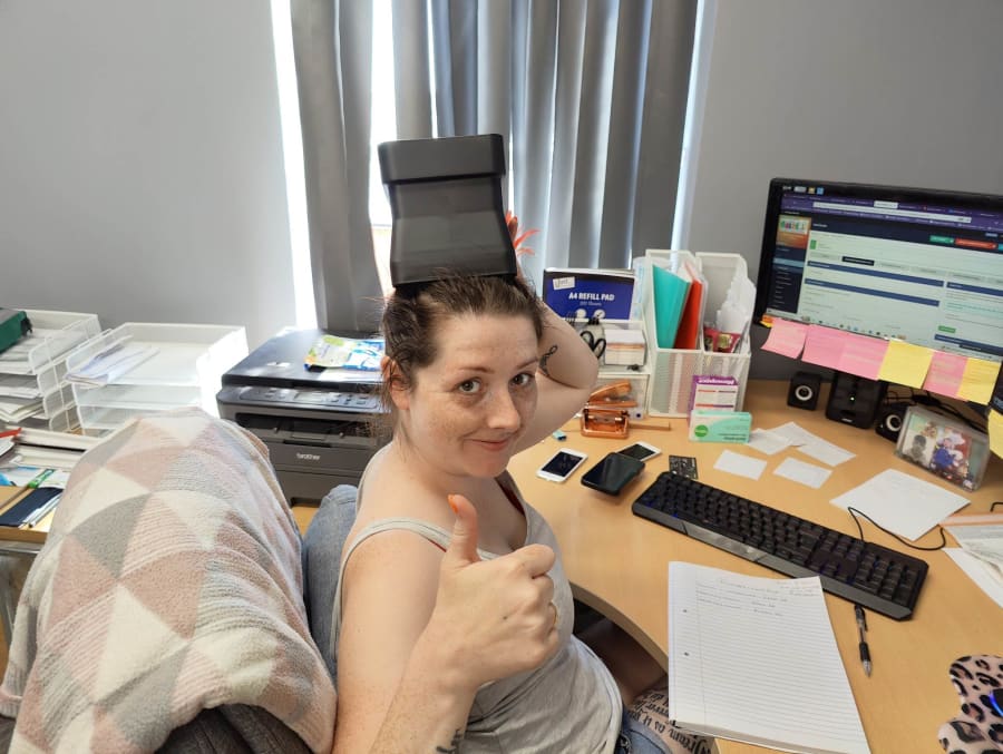They also make a great hat as modeled by our very own Debbie McGee equivalent Becky : )