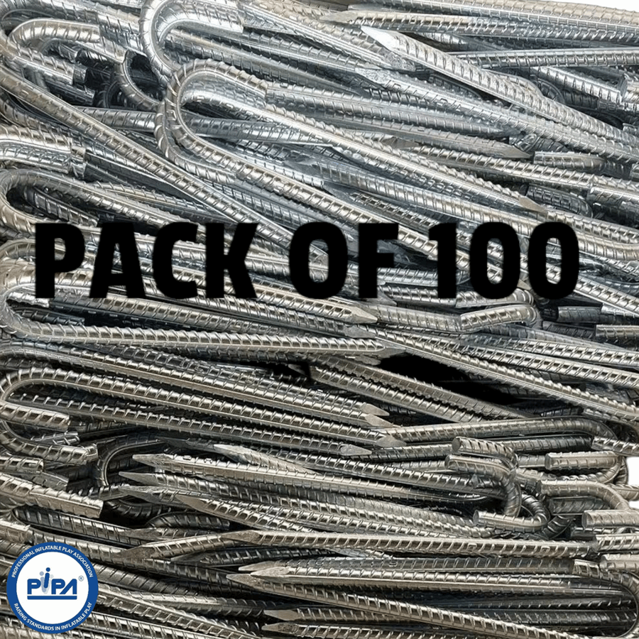 Welcome to our bouncy castles pegs for sale listing. Our inflatable anchor stakes have been specifically designed for anchoring bouncy castles and other inflatables in place. When anchoring your inflatables in place you must do so on a 45% angle to get the correct hold from them. The pegs we supply are made as required to comply with the British standard. Never ever leave an inflatable without either pegs, Raw Bolts or sandbag anchorage.