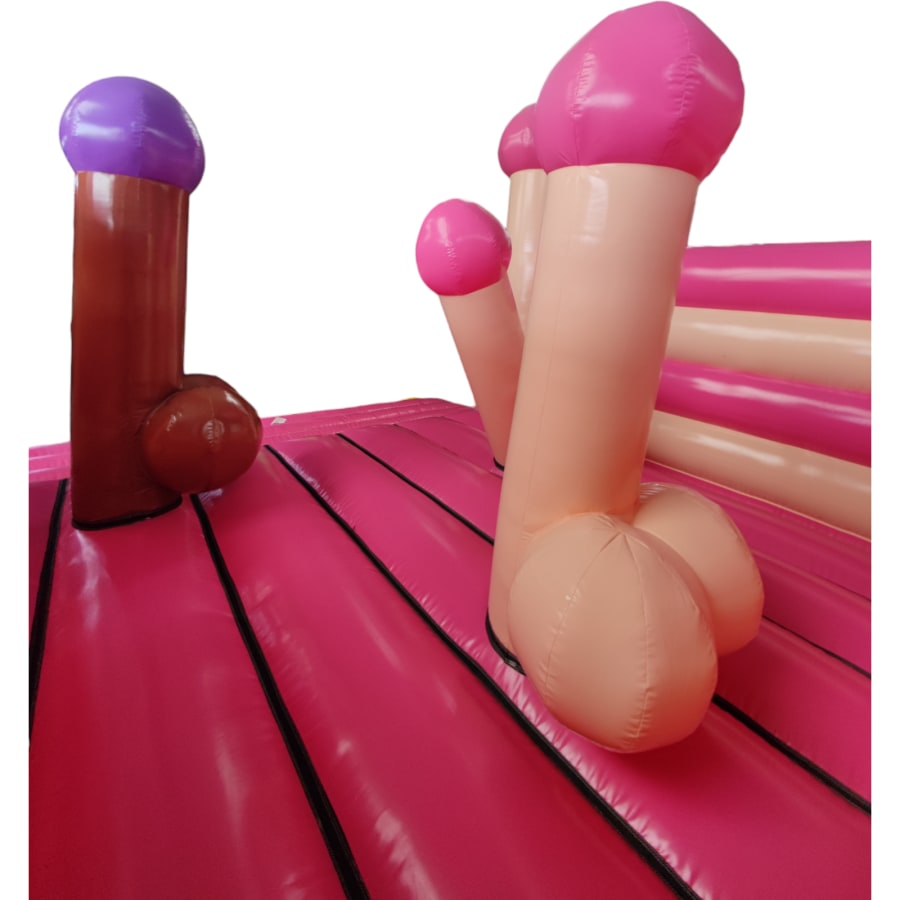 The Hen or Stag Party Inflatable is the wild, grown-up cousin to our family-friendly bouncers, offering an unforgettable experience that must be seen to be believed. This isn't just any inflatable—it's a bold, hilarious addition that promises to be the highlight of any adult celebration. Featuring giant, cheekily-shaped inflatables, this party center is a laugh riot that's perfect for those looking to add a bit of risqué fun to their event. It's the saucy standout of our collection and has been the talk of the season, making it the ideal choice for an adult funfair or private bash.
