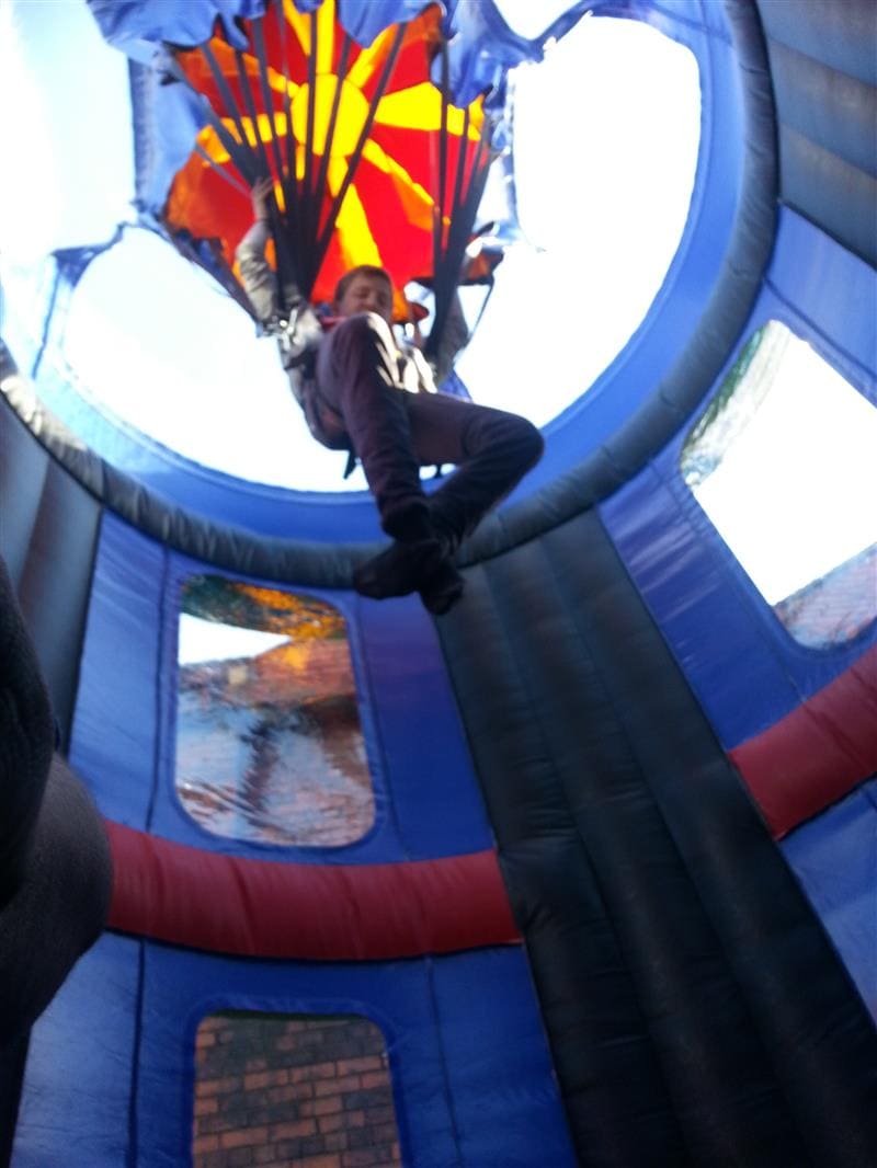 This Airborne Adventure hire is a completely unique idea designed, build and manufactured specifically as a parachute simulator hire for our hire company. It's yet another innovative product and a one of a kind inflatable attraction allowing participants to experience what its like to parachute for real in safe and controlled environment.