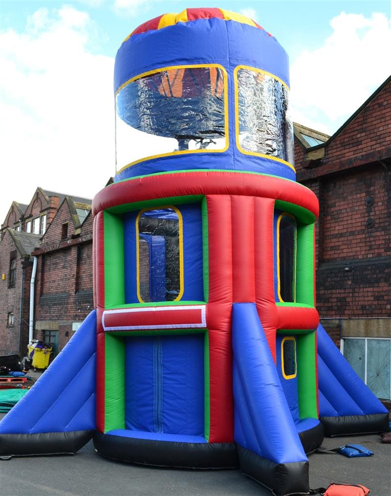 Standing over 26ft tall at its highest point, The Airborne Adventure parachute simulator hire is a brand new concept brought to you exclusively by our company and is available for sale throughout Europe. Our recently built Airborne Adventure hire is made from the strongest of Inflatable PVC available and is designed to the strictest of safety standards. After being evaluated in our own hire fleet for almost 2 years we are now proud to present the Airborne Mark 4 which is build to perfection.