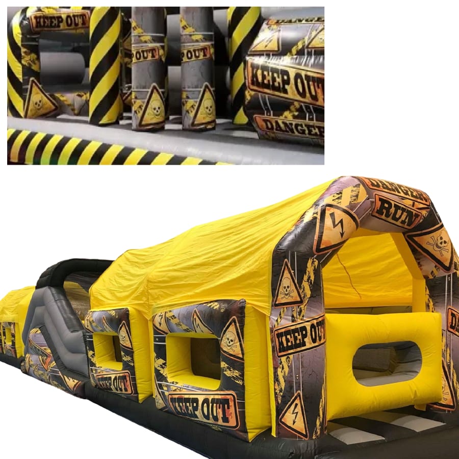 The whopping great obstacle course incorporates an up and over slide, biff and bash, and bouncing area, hurdles, whackers, biff and bash posts, mini humps, obstacle humps, crawl through tunnels and much much more!. Make your day with this modern obstacle section. The inflatable obstacle course offers a safe entrance way with full theming, followed by a random series of obstacles including a series of biff and bash pillars, cool chill out area in the middle, Hurdles and finished with an adrenaline fuelled slide at the end. The Danger obstacle course is the perfect choice for any children or adults event.