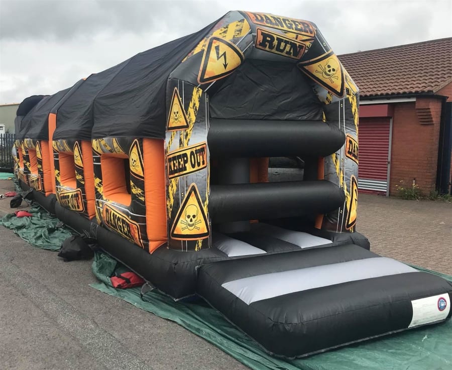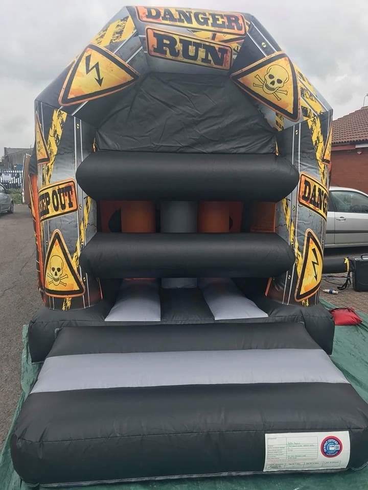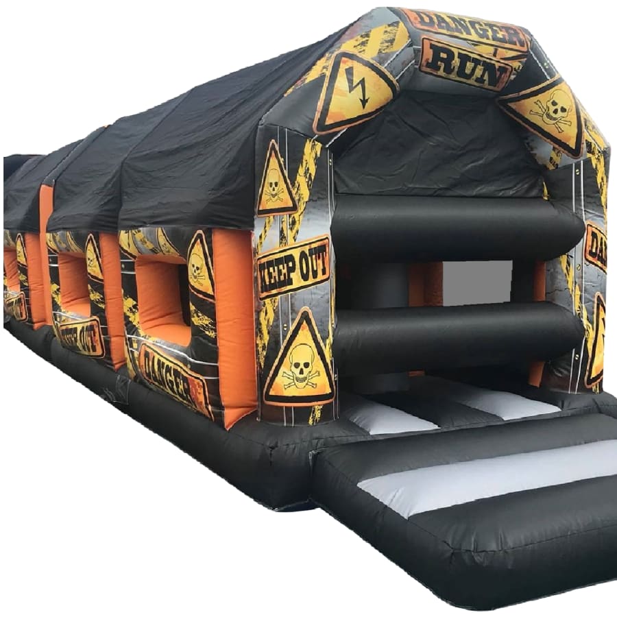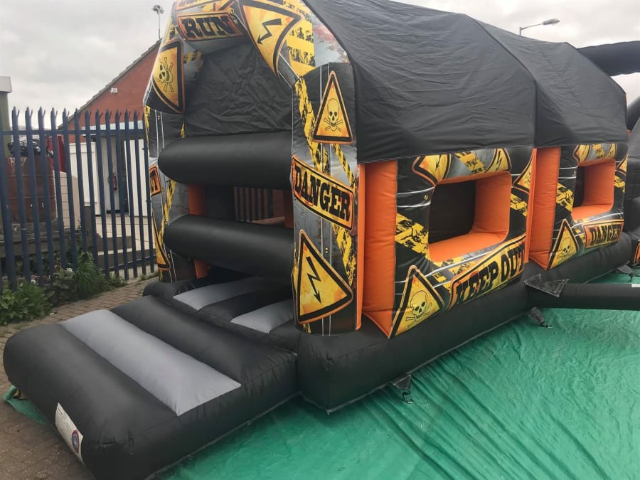 The whopping great obstacle course incorporates an up and over slide, biff and bash, and bouncing area, hurdles, whackers, biff and bash posts, mini humps, obstacle humps, crawl through tunnels and much much more!. Make your day with this modern obstacle section. The inflatable obstacle course offers a safe entrance way with full theming, followed by a random series of obstacles including a series of biff and bash pillars, cool chill out area in the middle, Hurdles and finished with an adrenaline fuelled slide at the end. The Danger obstacle course is the perfect choice for any children or adults event.