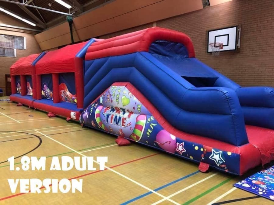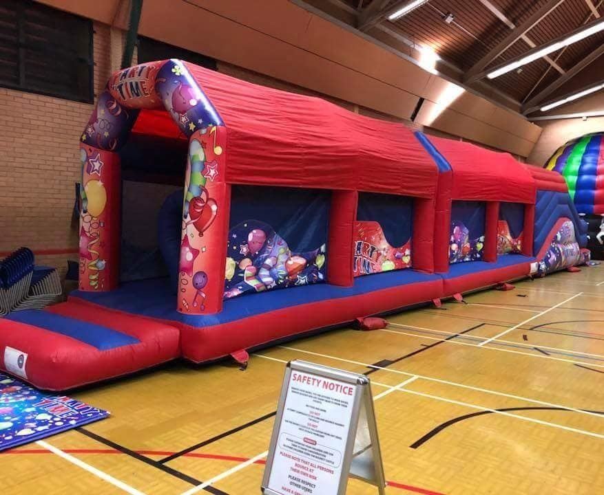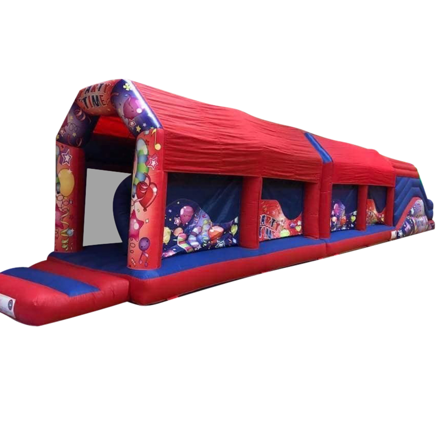 The all new inflatable obstacle course measures in at whopping 65ft in length yet is still perfect for both indoor and outdoor hire. 65ft is a brilliant length making it suitable for most domestic parties, pubs, clubs, schools, galas, scouts, cubs, guides and other community groups aiming to keep children entertained for longer periods of time than the standard bouncy castle for example.