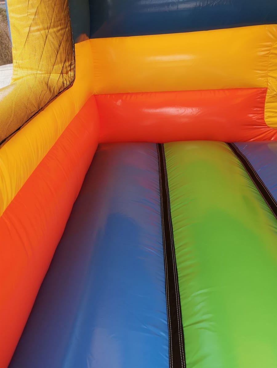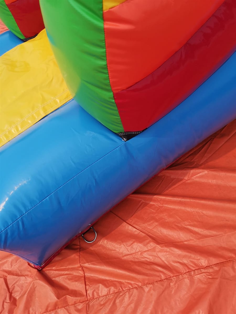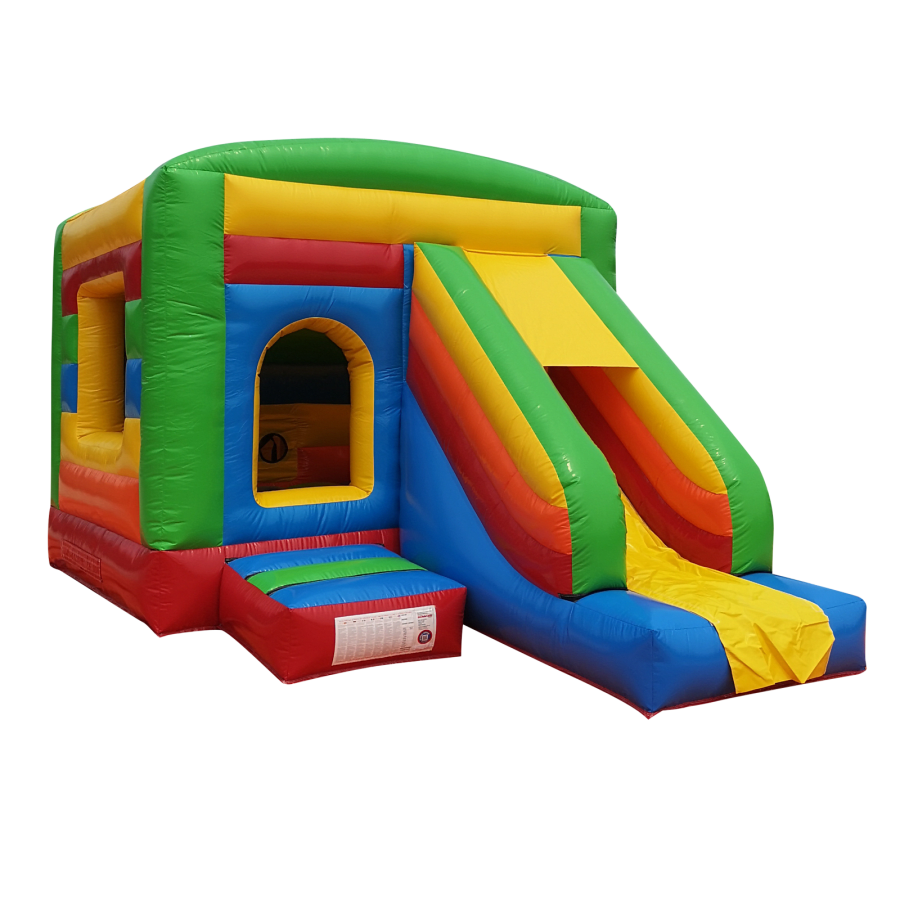 The 12ft x 17ft Bouncy castle with slide is a fantastic new addition that can be added to your fleet. The bouncy castle with slide combines 2 of the most popular items in one extraordinary inflatable where space is at a premium. The bouncy castle with slide combo is the perfect combination slide for any party, venue or occasion and is ideal for all age groups. This brightly coloured piece of equipment provides the perfect bouncing area to bounce along with friends, whilst the slide provides entertainment for the rest of the guests at the same time and certainly won't break the bank.