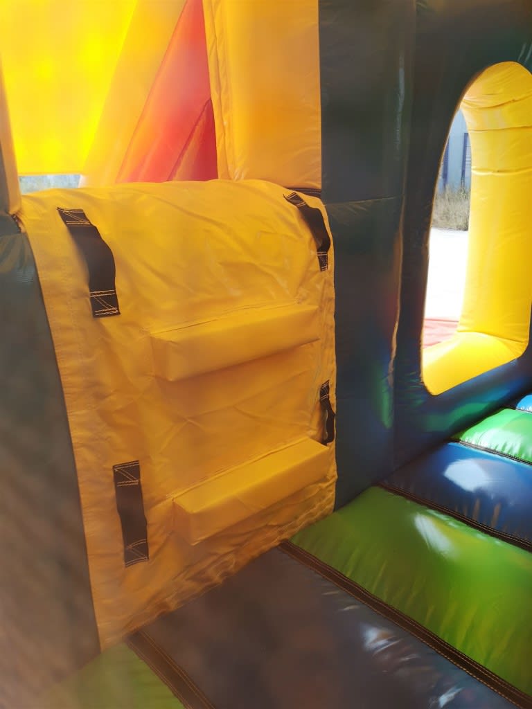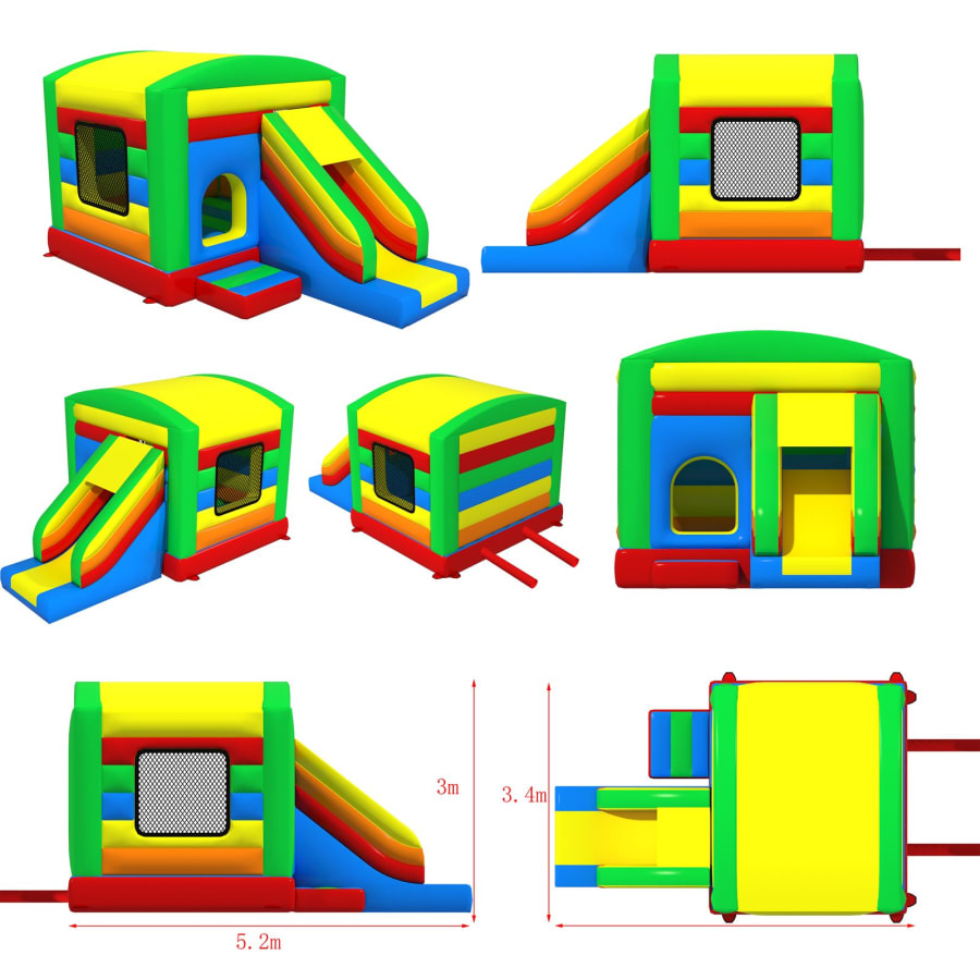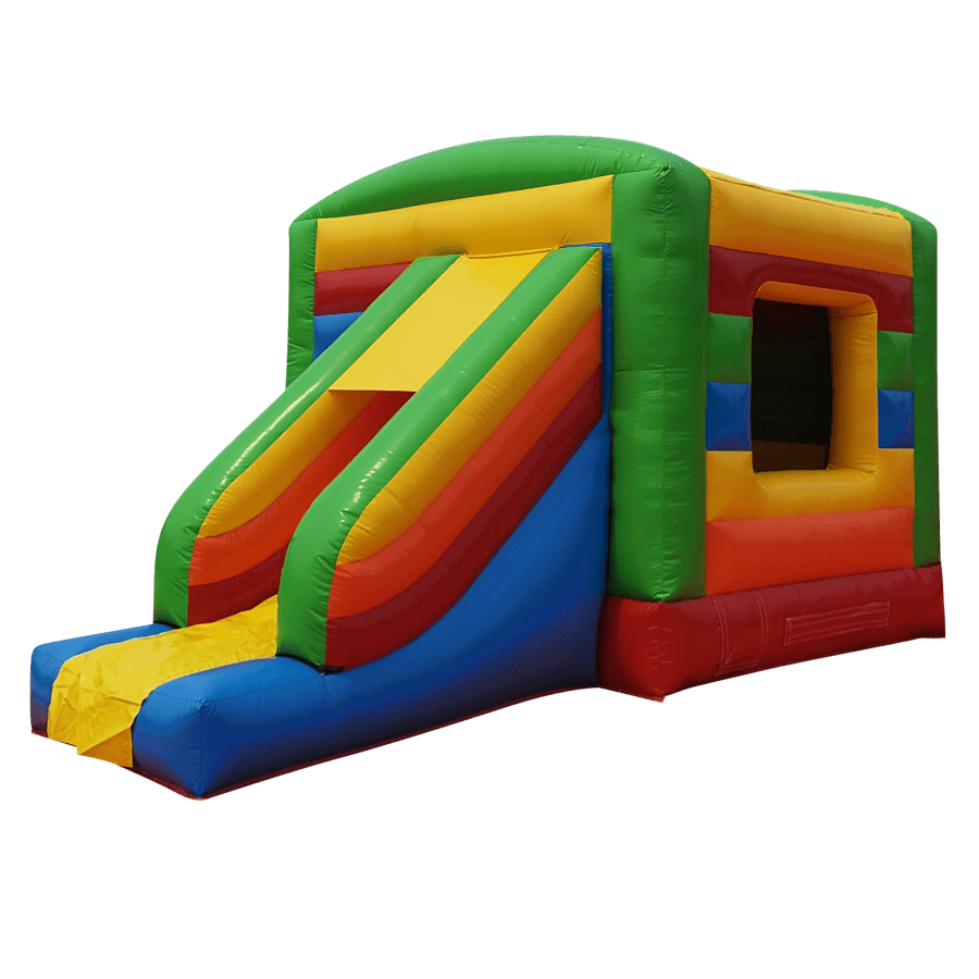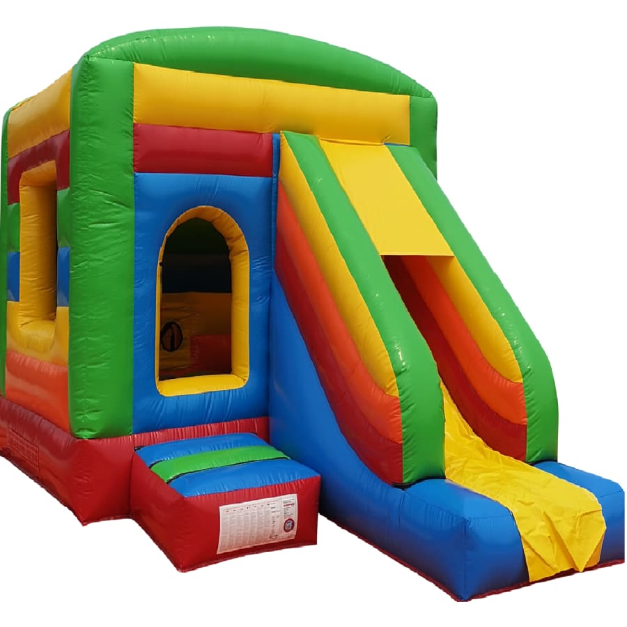 The 12ft x 17ft Bouncy castle with slide is a fantastic new addition that can be added to your fleet. The bouncy castle with slide combines 2 of the most popular items in one extraordinary inflatable where space is at a premium. The bouncy castle with slide combo is the perfect combination slide for any party, venue or occasion and is ideal for all age groups. This brightly coloured piece of equipment provides the perfect bouncing area to bounce along with friends, whilst the slide provides entertainment for the rest of the guests at the same time and certainly won't break the bank.