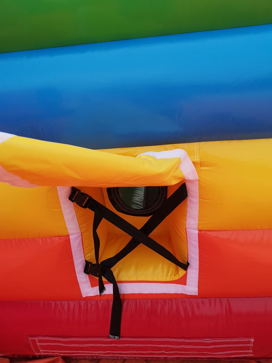 The bouncy castle with slide hire offers features such as firm step holds, Extra handrails and a netted roof to stop over adventurous children from climbing out ensuring maximum safety. The inflatable is perfect for entertaining a birthday party of around 15 children at any one time (not all at once of course) and is a really good slide choice is your planning a small school gala or summer fete where the smaller age range needs to be catered for. We also have a matching range of Bouncy castles, Ballpools, Soft play and other inflatables if you really want to go all out. This will be a battery powered design as standard but can be pre-wired upon request.