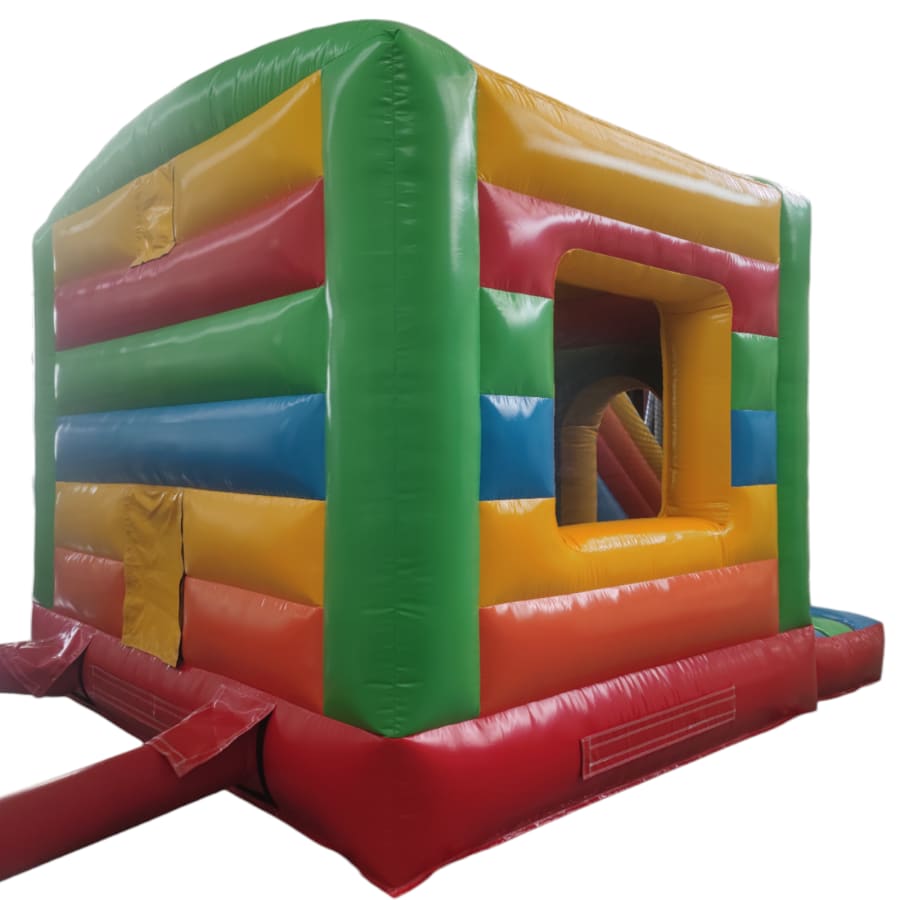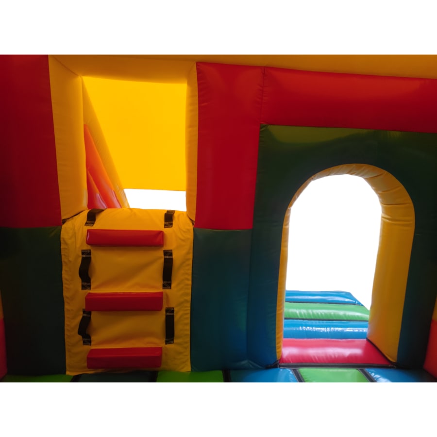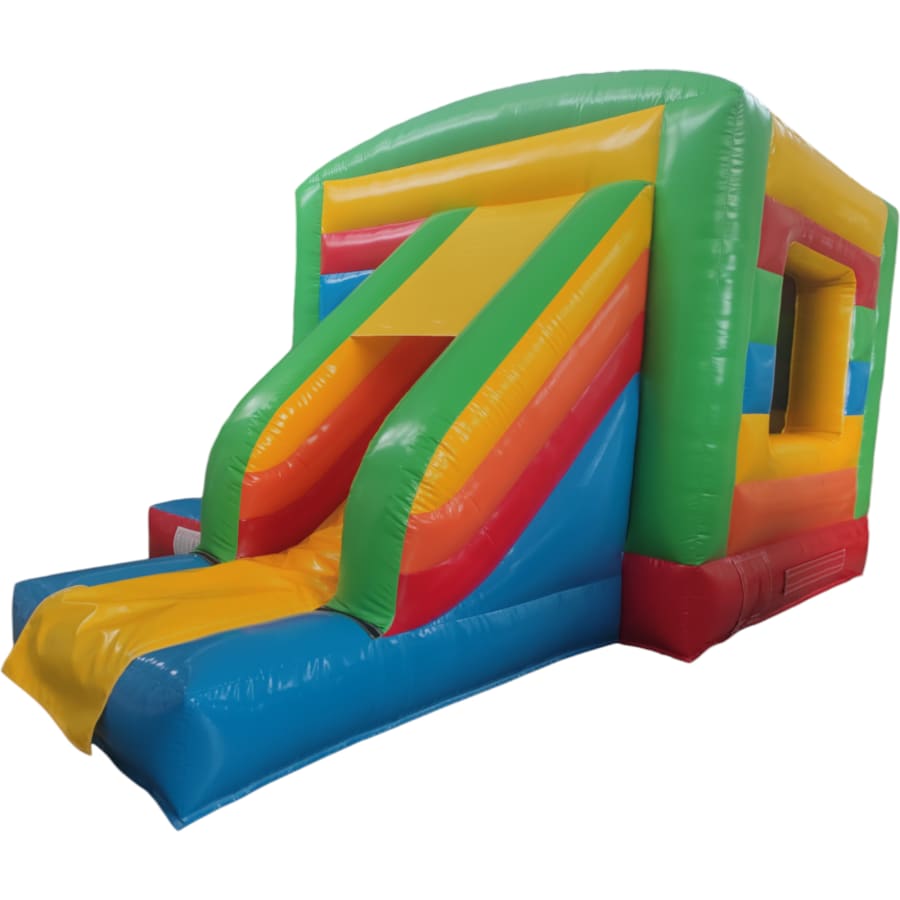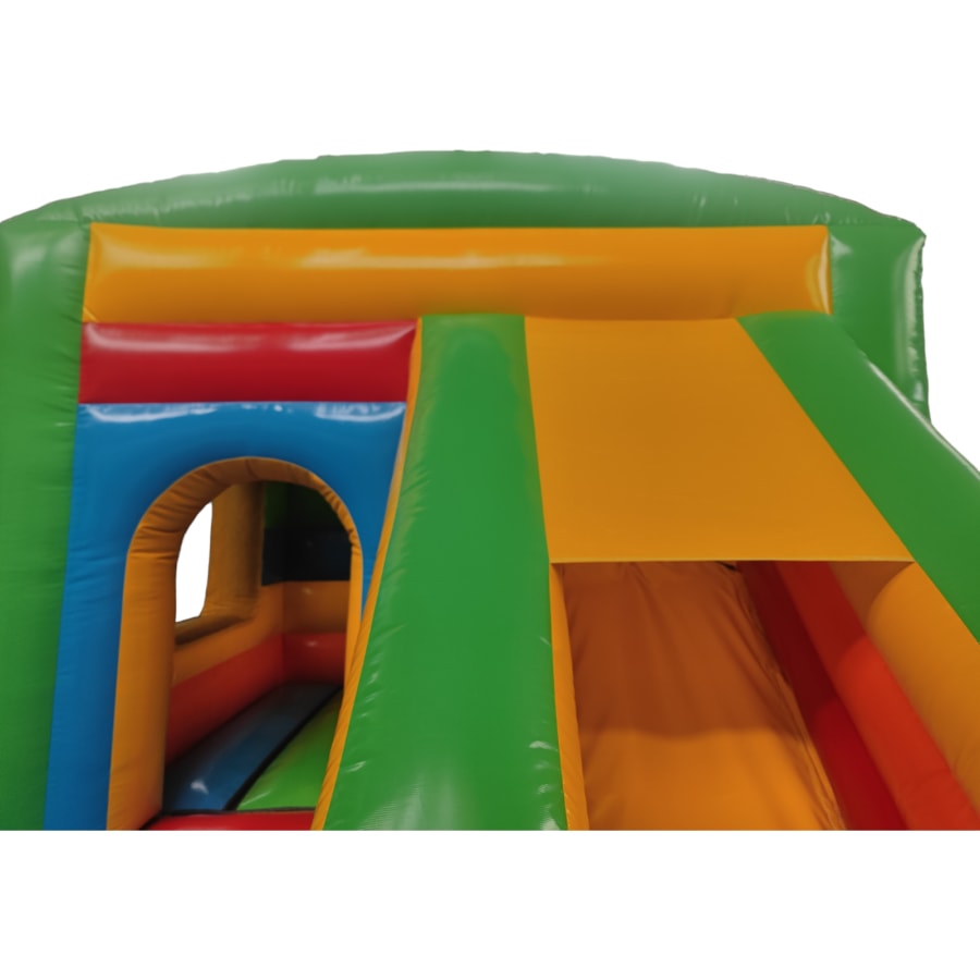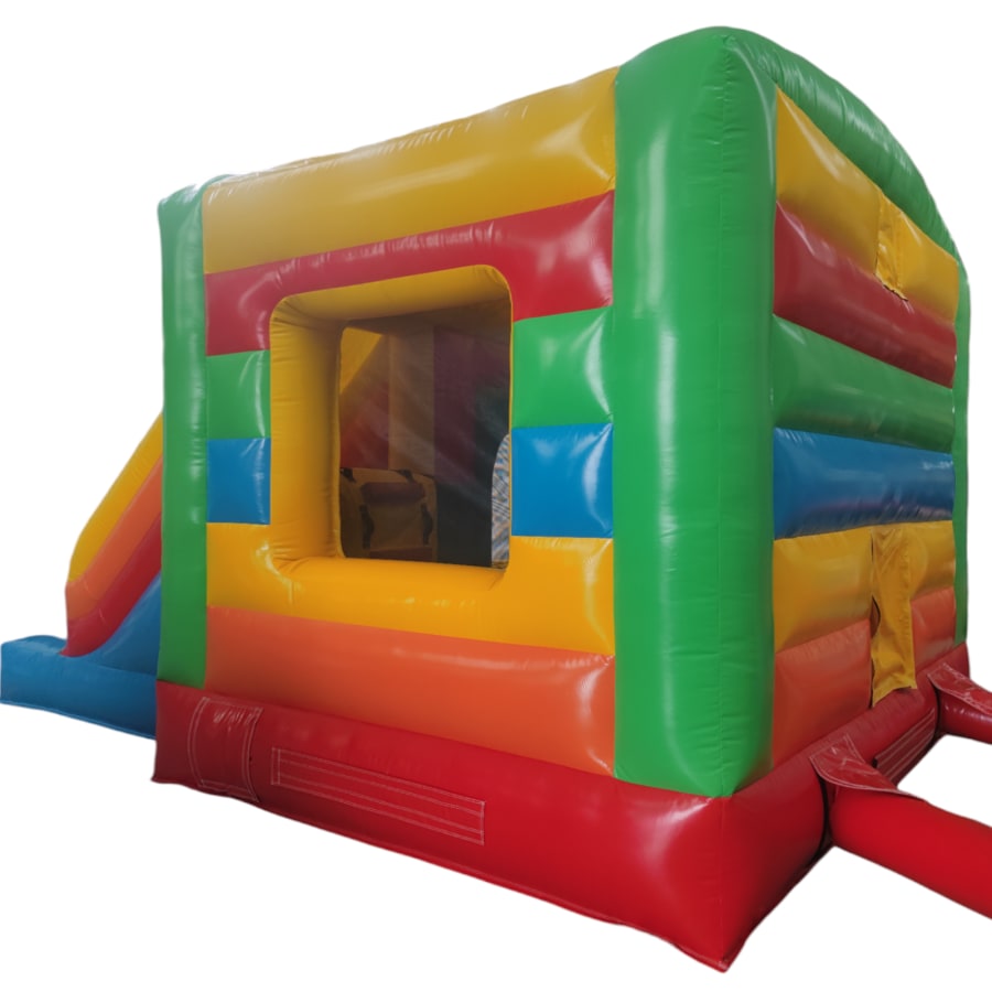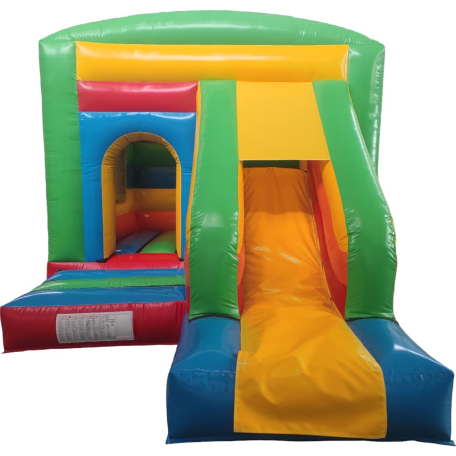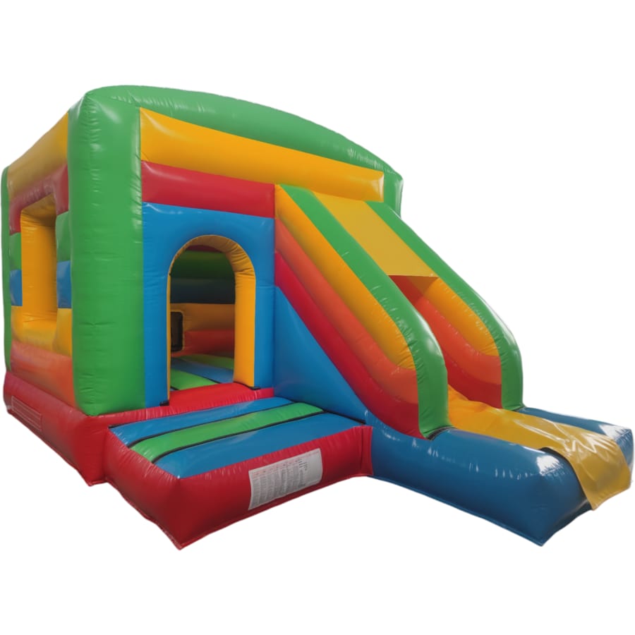 The 12ft x 17ft Bouncy castle with slide is a fantastic new addition that can be added to your fleet. The bouncy castle with slide combines 2 of the most popular items in one extraordinary inflatable where space is at a premium. The bouncy castle with slide combo is the perfect combination slide for any party, venue or occasion and is ideal for all age groups. This brightly coloured piece of equipment provides the perfect bouncing area to bounce along with friends, whilst the slide provides entertainment for the rest of the guests at the same time and certainly won't break the bank.