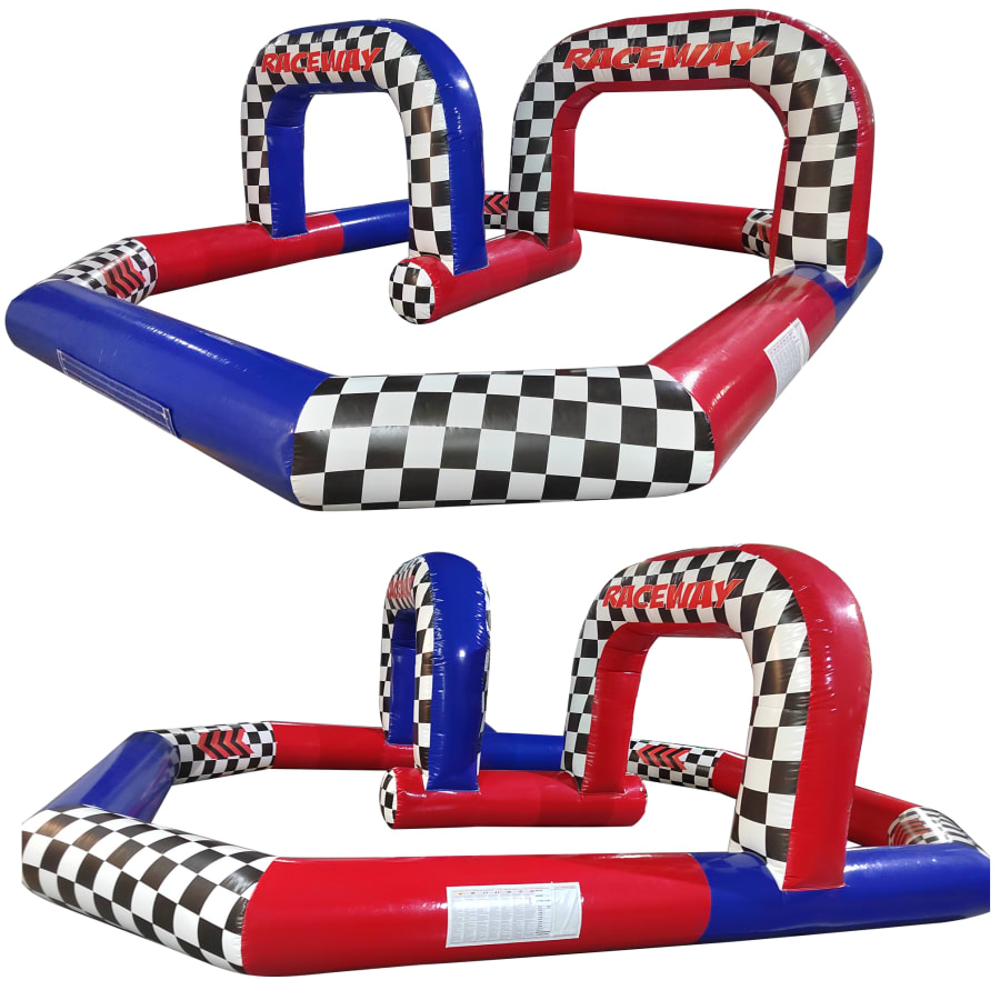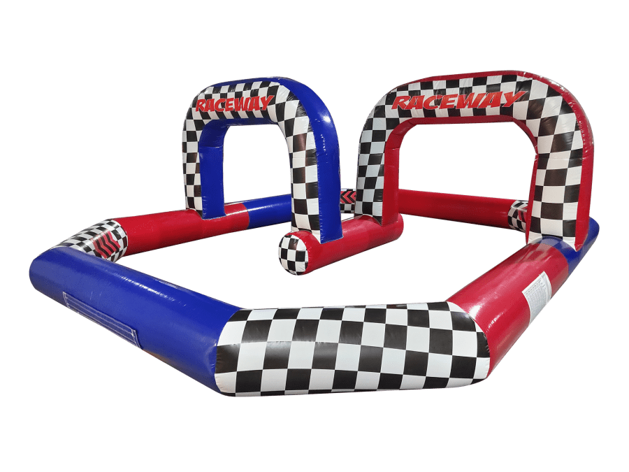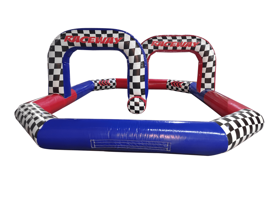 This particular quad track features a simple stretched octagon, complete with raceway arch to really complete the look. The tracks are designed as a 1.5ft barrier making them ideal for use with Didicars and Scuttle bugs and better still,The whole thing packs up so small it can be transported in the back of a small van.
