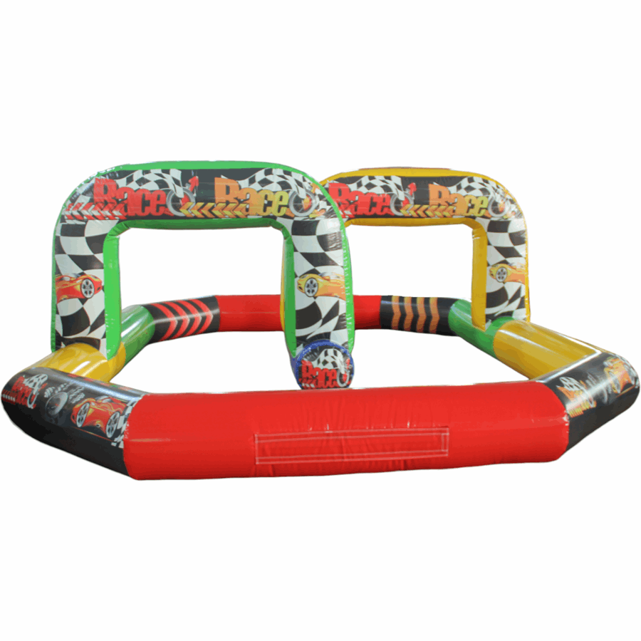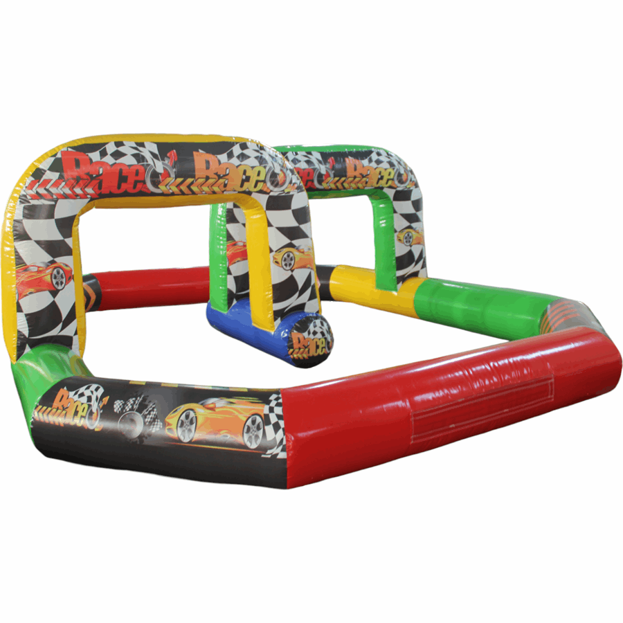 This particular quad track features a simple stretched octagon, complete with raceway arch to really complete the look. The tracks are designed as a 1.5ft barrier making them ideal for use with Didicars and Scuttle bugs and better still,The whole thing packs up so small it can be transported in the back of a small van.