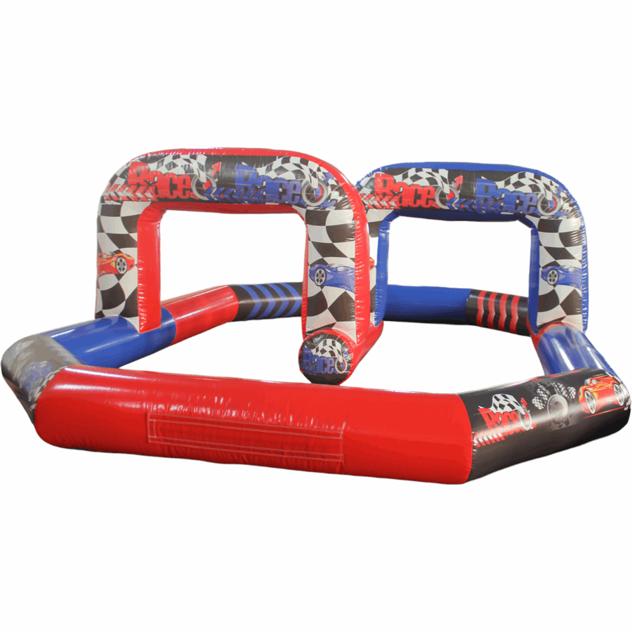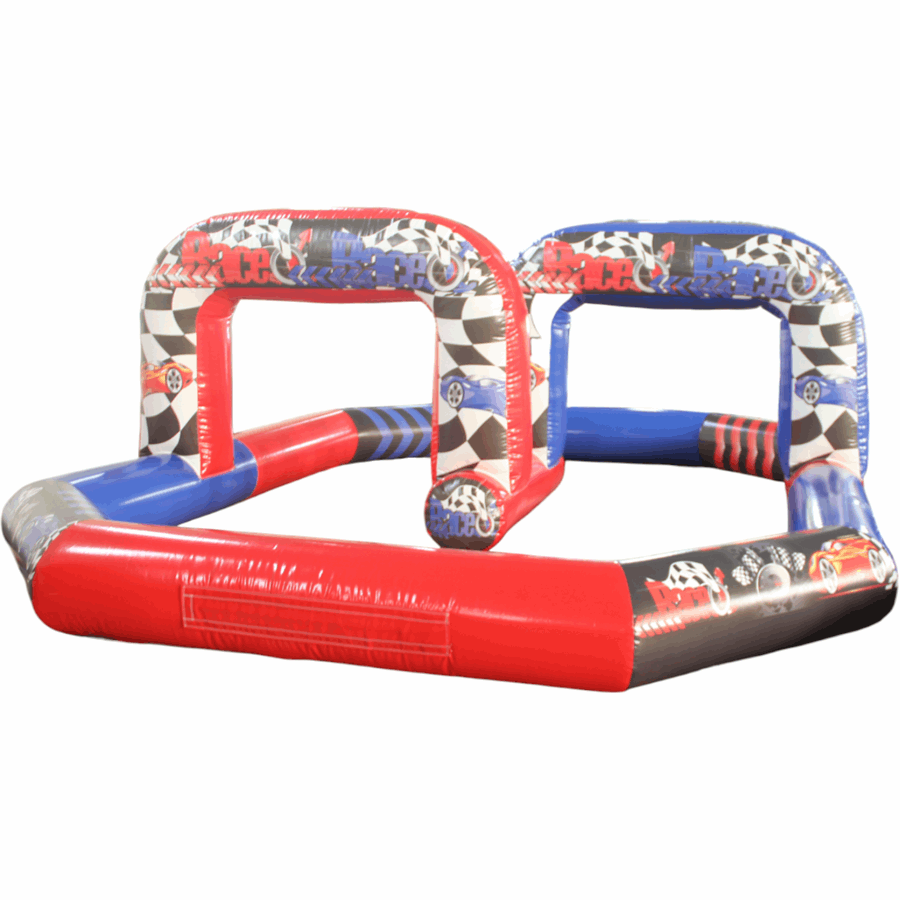 This particular quad track features a simple stretched octagon, complete with raceway arch to really complete the look. The tracks are designed as a 1.5ft barrier making them ideal for use with Didicars and Scuttle bugs and better still,The whole thing packs up so small it can be transported in the back of a small van.