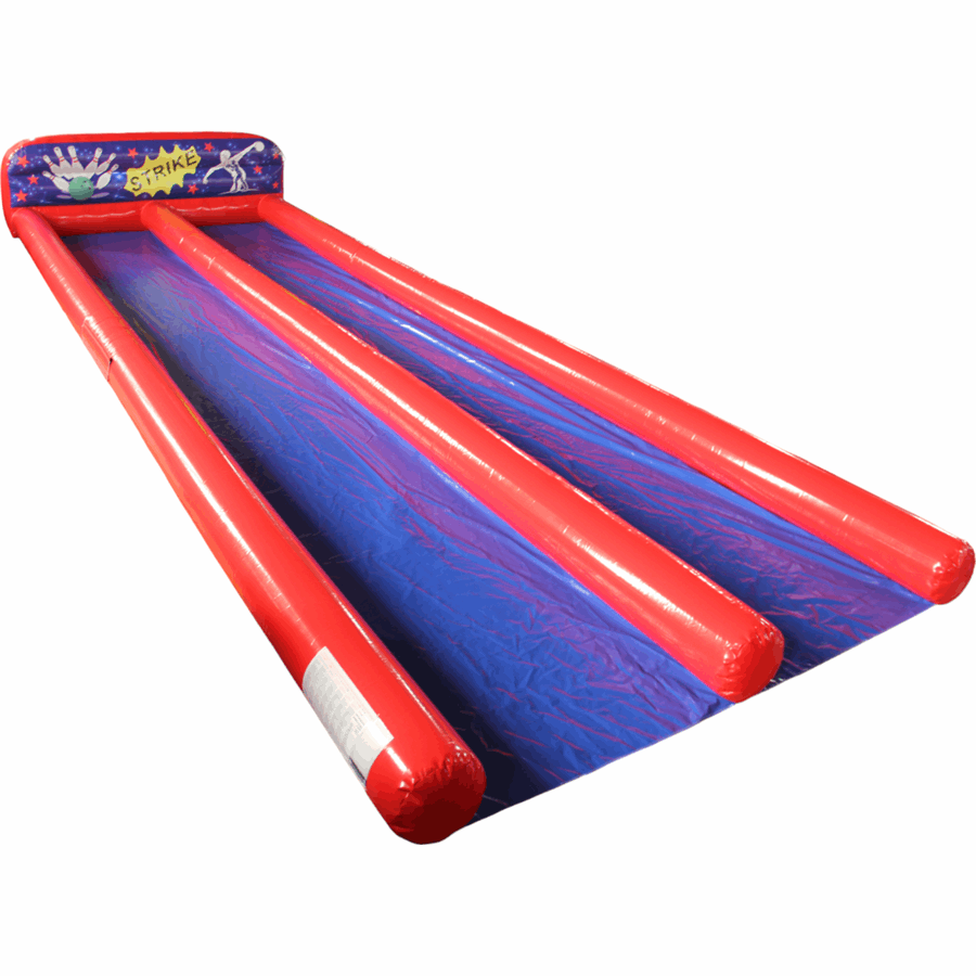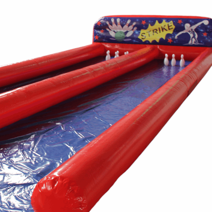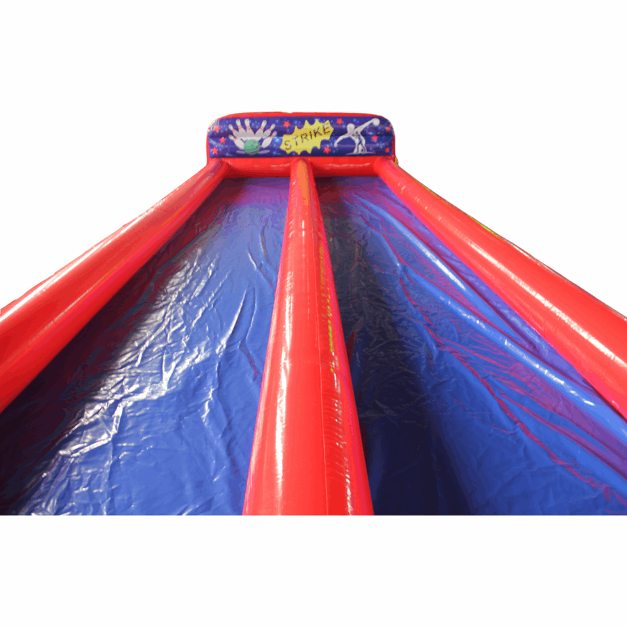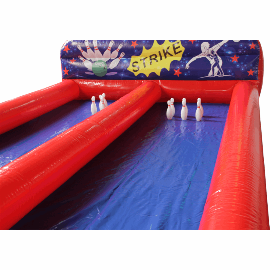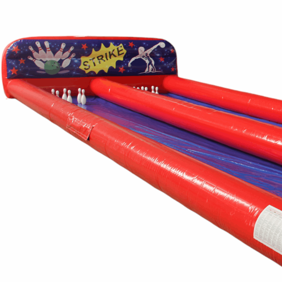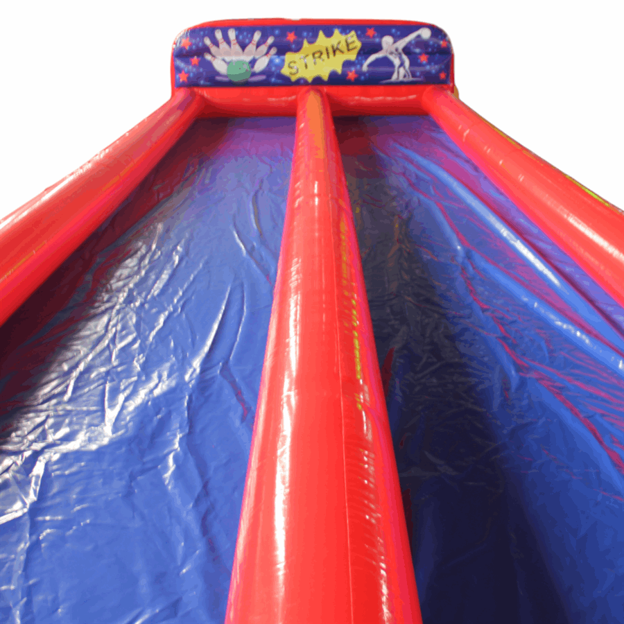 Say goodbye to really big steel & timber structures that can be cumbersome and difficult to install at a venue and say hello to this season's fully mobile inflatable bouncy castle version to buy. This is one of many new additions and is already popular across our range of events. This amazing attraction can be seen from afar yet still sensibly sized to fit inside most venues. This inflatable bowling alley for hire is suitable for both kids & adults alike.