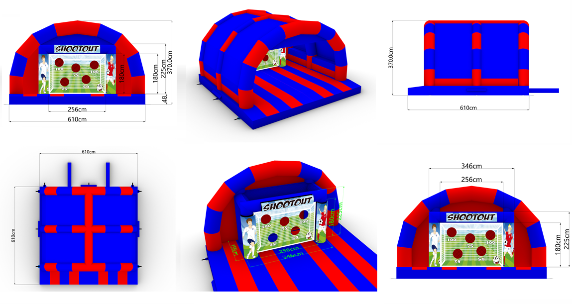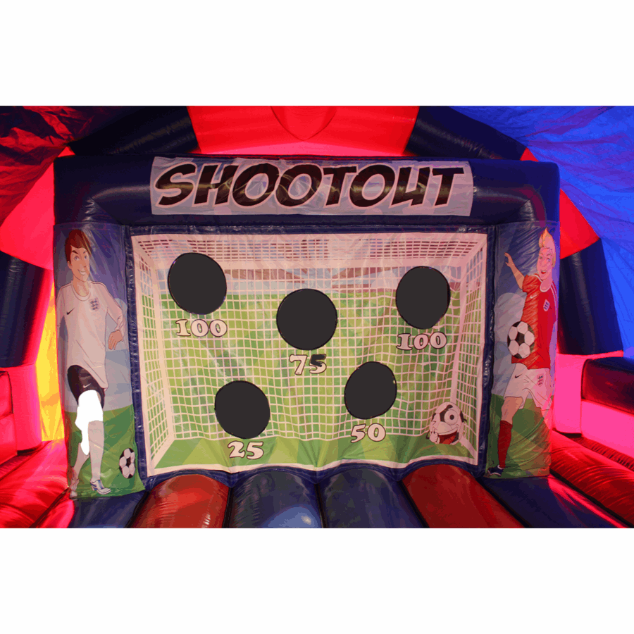Say goodbye to those hard chassis framework versions which could be cumbersome and difficult to install at a venue and say hello to this season's fully inflatable bouncy castle football version. This is one of many new additions and is ball shootout is suitable for any Football based occasion such as the World cup, European cup. Our range of sports inflatables have gained more and more popular over recent years and our football range is now really impressive in comparison to most football event suppliers.