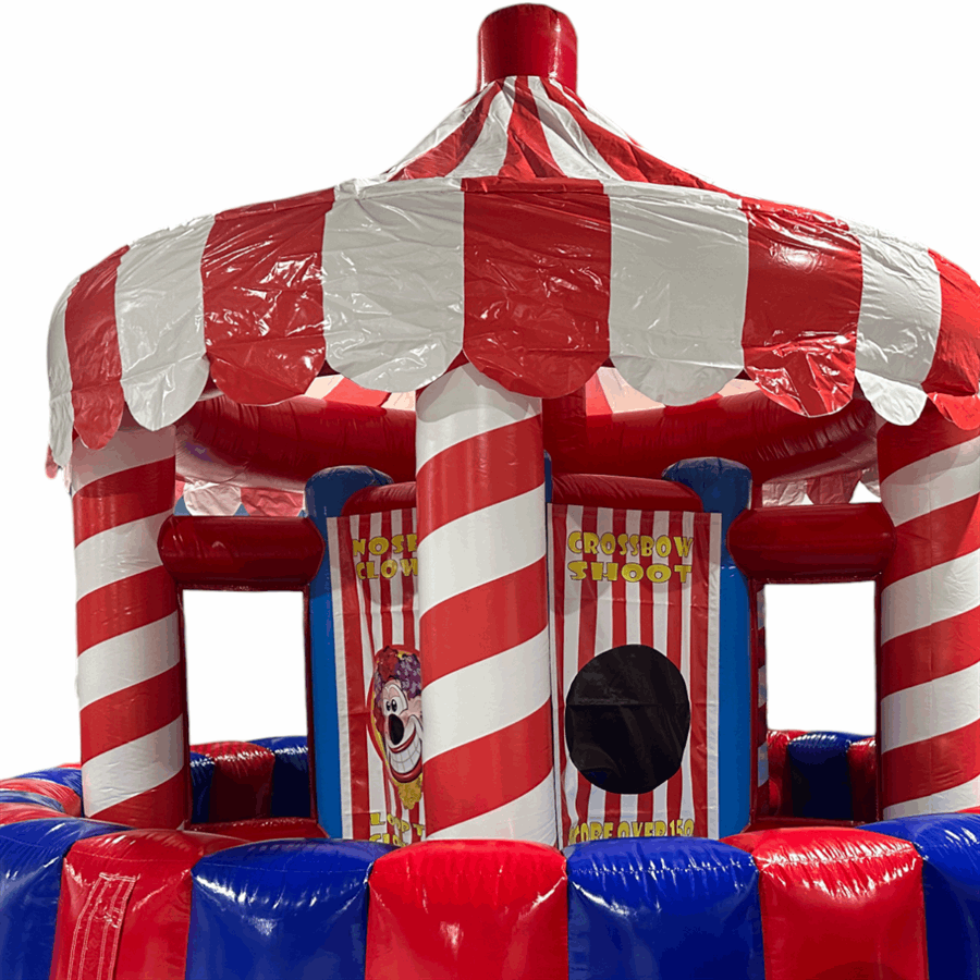 The 5 in one game offers, Hoopla, Ringtoss, Prize darts and a juggler ball game. The inflatable stall is a absolute whopper, measuring i at a huge 20ft wide making it a ideal replacement for one of the most iconic carnival games of all time and an excellent way to draw people into your event. No event is complete without all the fun of the fair. The new inflatable stall has been designed as it only takes around 20 minutes to put together. The stalls are completely mobile and relatively easy to transport ensuring set up can take place indoors, upstairs and in hard to reach areas that were previously inaccessible.