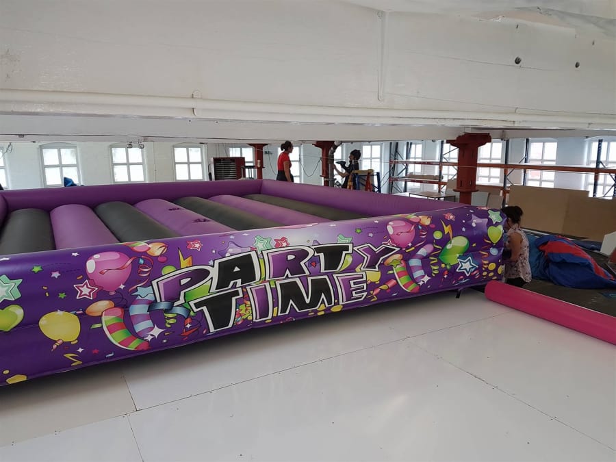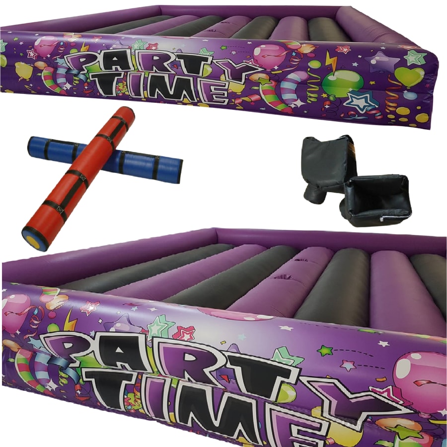 - Includes inflatable, 2 x pugil sticks, 2 x Tops and 2 x Metal work