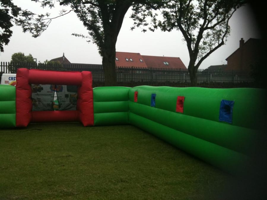 The Inflatable human football table is a fantastic item to reward players on a football team, to generate money at a football gala or football tournament and is an Ideal carnival game, team building game, fundraiser and event showstopper and works really well when played as part of a time challenge with potential prizes for those who are able to remain undefeated throughout the event. The Football challenge game is major must have for anyone planning a team building event, corporate gathering, Gala, fun day or it's a knockout inflatable day.