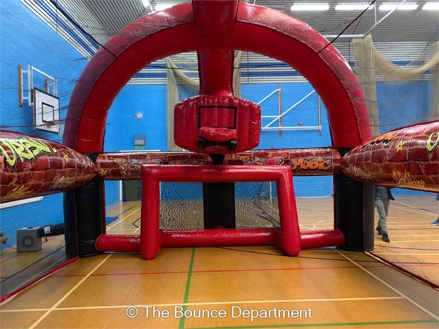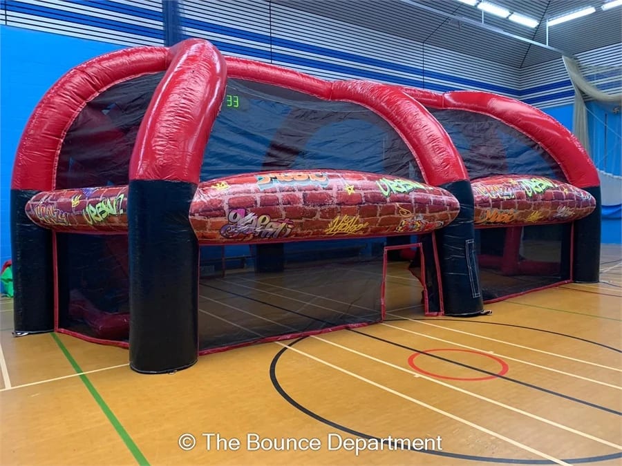 The inflatable version is one of the newest additions to our website and is already popular across our range of events. This amazing attraction can be seen from afar yet still sensibly sized to fit inside most venues. The inflatable sports area for hire is suitable for both kids & adults alike and provides hours of entertainments across the board.