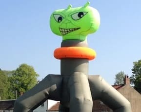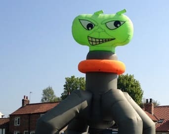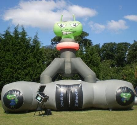 This inflatable does exactly what it says on the tin. Its a giant 4 legged Alien pod, designed to hug one of our standard 9 pod laze mazes. Its primary purpose is to draw in customers and highlight your presence at a carnival or event. It can also double up as a corporate branding attachment and an de signed to suit a whole host of custom applications if required.o
