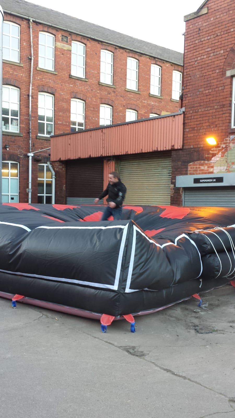 Similar to our original stunt mat, this mat was made for the world famous Reebok spartan race in all its glory. The mat does what it says on the tin & can be fully customisable in any colour size or theme required. The drop bag was originally designed for a film production company who had a requirement for an airbag to harness a fall from a 7 meter platform. The brief was simple and after a number of prototypes, The giant airbag was finalised and added as a permanent product to the BB range.