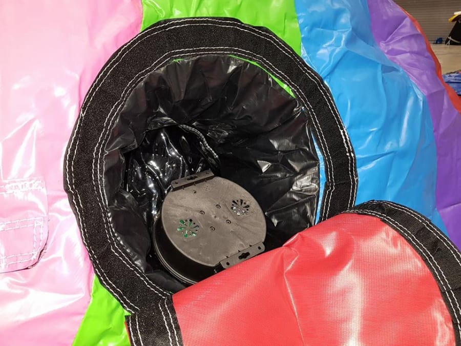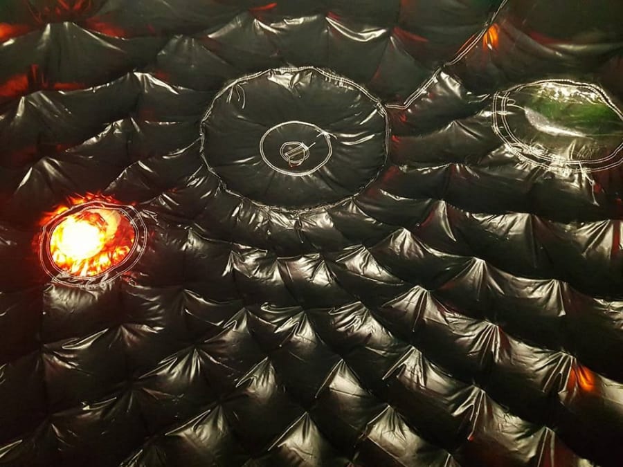 The dome also comes with a lighting slot in the top that accepts most kinds of disco lighting, this is placed inside a clear plastic tube that allows light to penetrate inside the dome creating some really good effects inside. The slot is then zipped close and a velcro cap is placed over to keep it watertight but please bear with us in heavy rain as nothing is quite 100% waterproof.