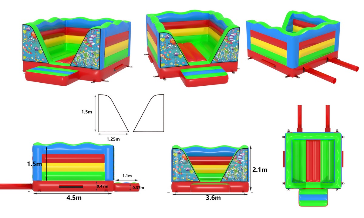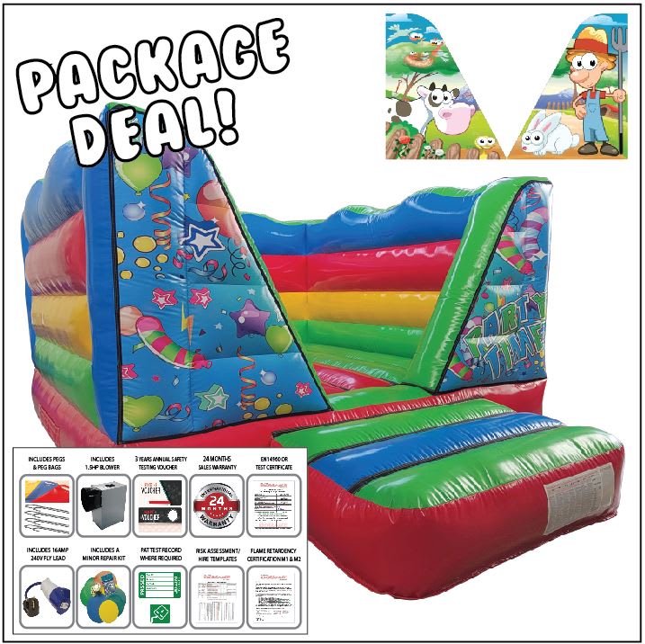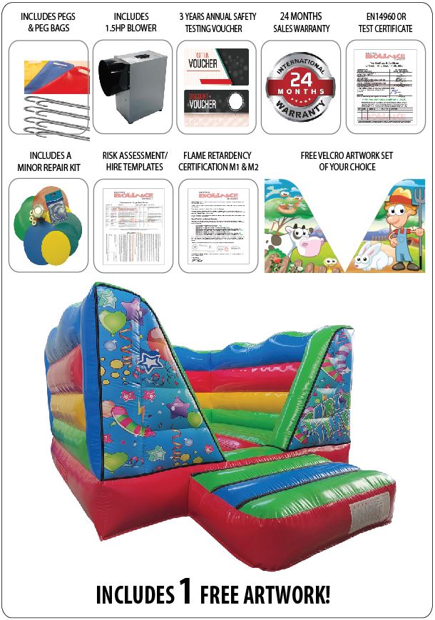 The parents absolutely love this new design at venues and its size means it will fit in almost all venues, the castle incorporates Biff and Bash pillows where necessary giving hours of entertainment for all children.