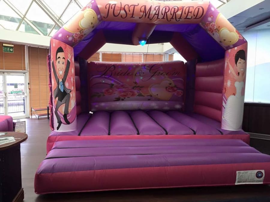 The Adult wedding bouncy castle is a brilliant attraction and a really good way to draw visitors to your event, fete, gala, fair, school gala, pub, club, group, end of term party, wedding reception, shopping centre or simply for a bit of light-hearted fun at a private party event or adult bash. Quickly inflated, This item will provide hours of fun for many events & its compact inflatable design ensures its accessible to all locations including indoors. Why delay, Call us today and see what we can do to make your event extra special!
