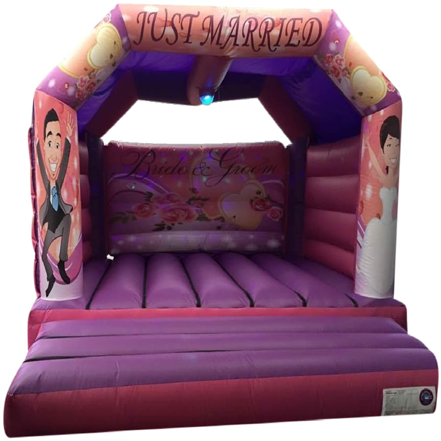Please let me introduce you to the most popular adult wedding bouncy castle, it's our adult 15x15 deluxe adult 'Just Married' bouncy castle designed specifically for all you big kids in life.