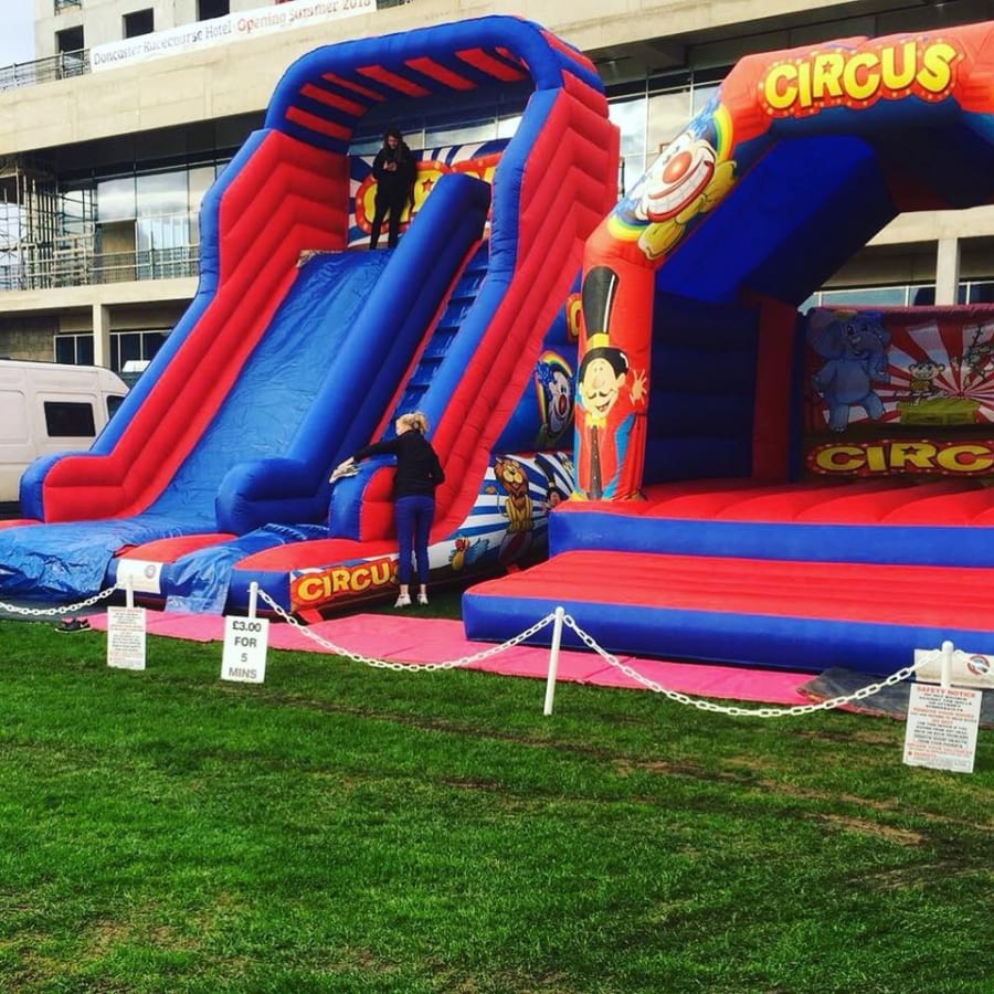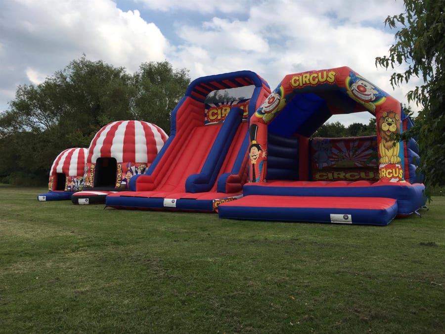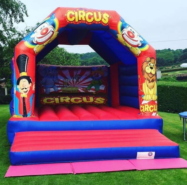 This is by far one of our most popular adult bouncy castle in our fleet, it's our Adult Red & Blue Circus 17x16ft Bouncy castle designed specifically for all you big kids in life. The Adult castle is a great size and is a real eye catcher for a garden party or event and will keep both adults and children entertained for hours, leaving you to be able to sit back and watch everyone bounce, play, sing, dance, laugh, have fun and enjoy their day.