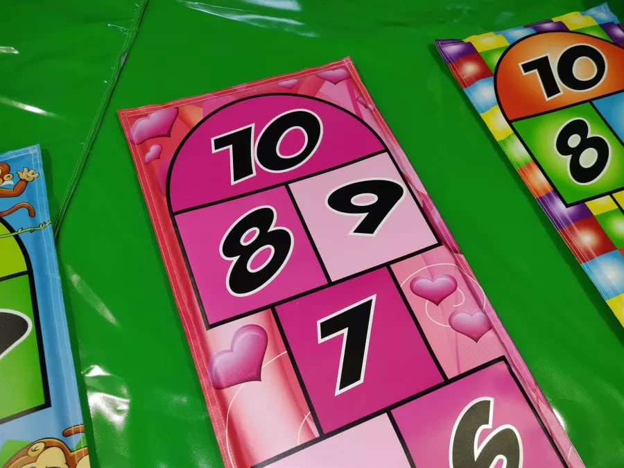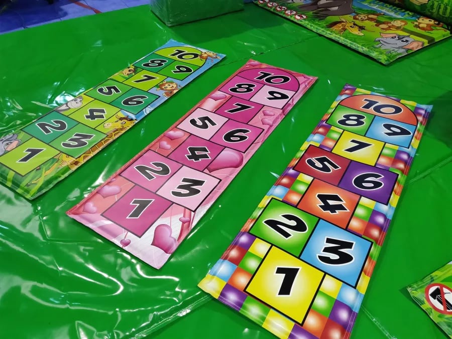 The Hopscotch Mat, An ideal add on to any soft play kit, the kiddies will go again and again and again until they have cracked it. Ideal for the mobile hire market. These are brilliant for the kids to play with and great reminders of games that will have been played by the adults as youngsters meaning they cant help but join in.