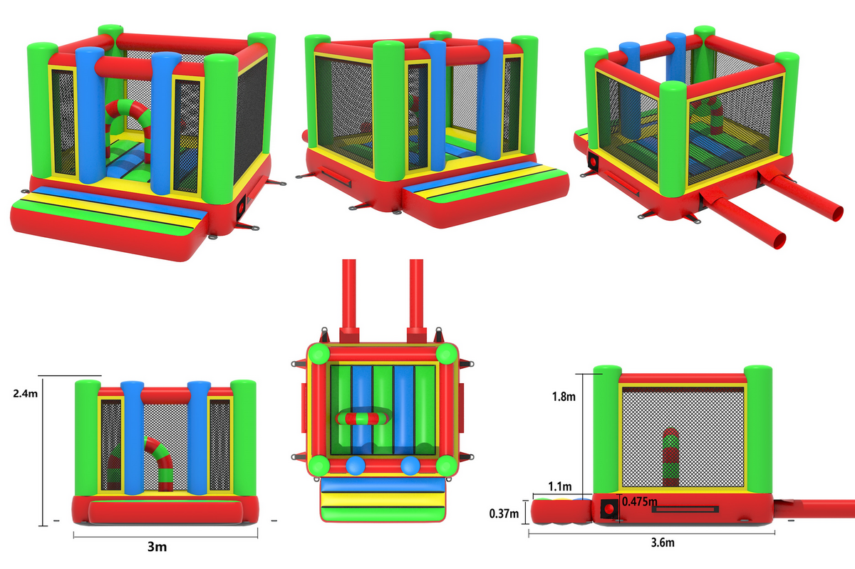 The Netted multiplay bouncer is a great size and will keep children entertained for hours, leaving you to be able to sit back and watch them bounce, play, laugh, have fun and enjoy their day. The colour theme is very realistic and absolutely fantastic quality & bouncer still offers a safety step at the front which makes it easy for getting on and off the inflatable safely.