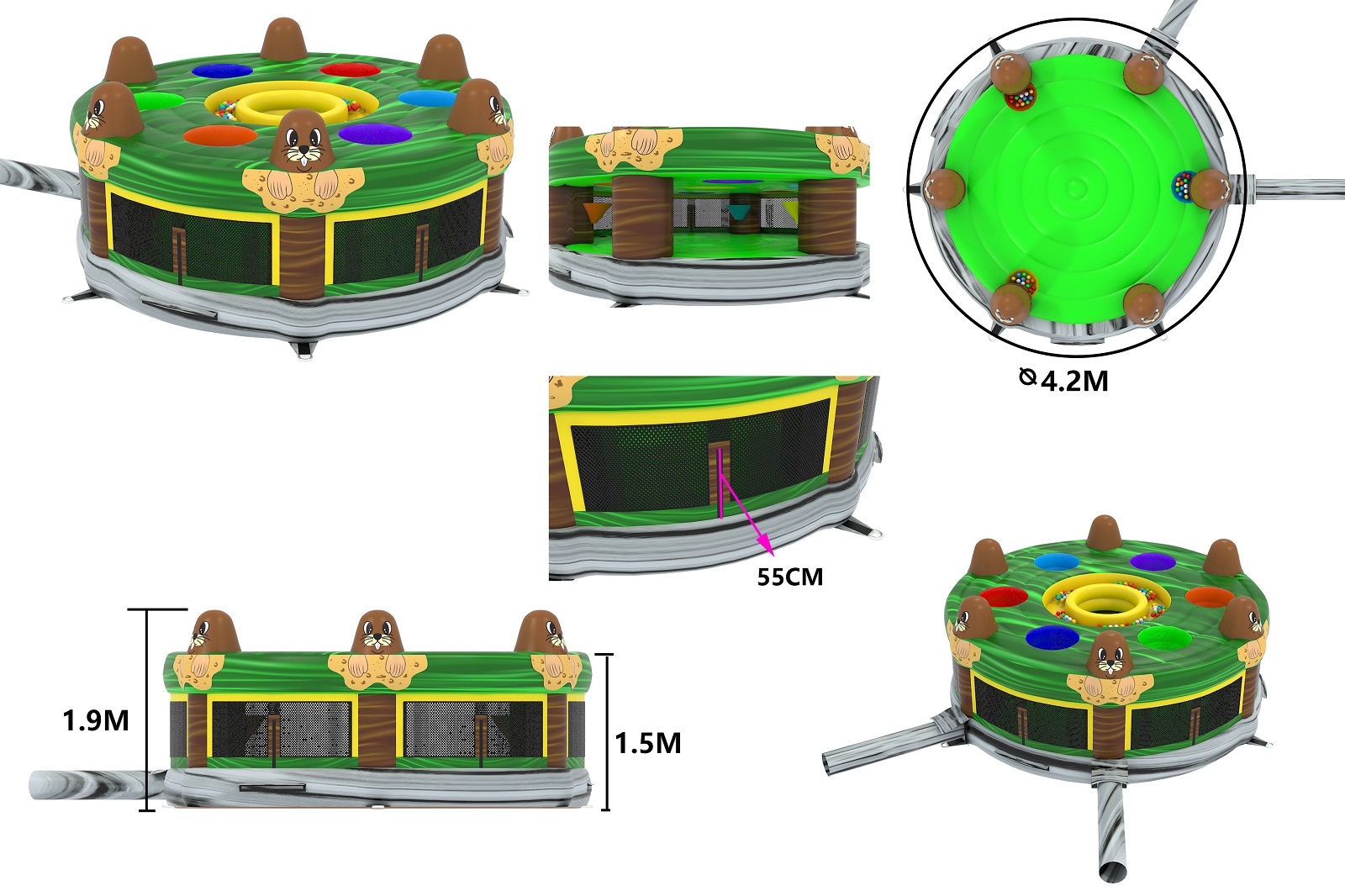 - Includes inflatable, 6 x Helmets and Whacker