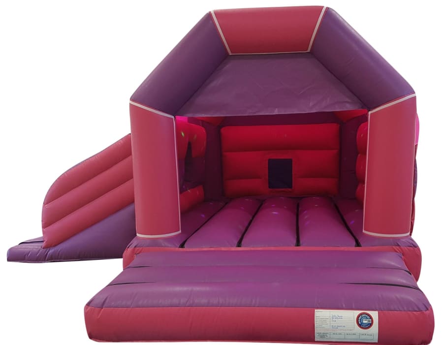 The 15ft x 16ft Bouncy castle with slide is a fantastic new addition that can be added to your fleet. The bouncy castle with slide combines 2 of the most popular items in one extraordinary inflatable where space is at a premium. The bouncy castle with slide combo is the perfect combination slide for any party, venue or occasion and is ideal for all age groups. This brightly coloured piece of equipment provides the perfect bouncing area to bounce along with friends, whilst the slide provides entertainment for the rest of the guests at the same time and certainly won't break the bank.