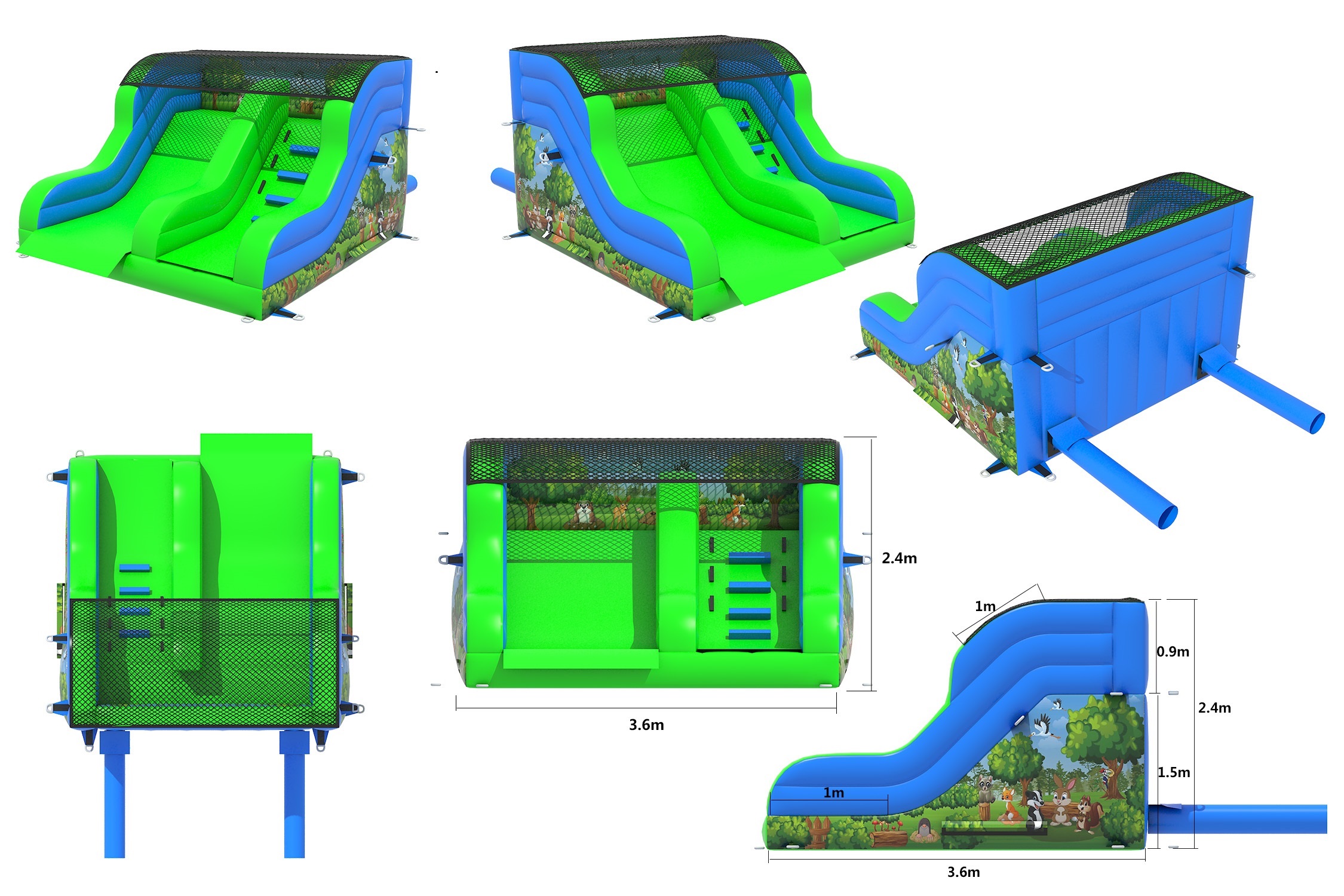The Woodlands theme 5ft platform slide is the perfect intermediate slide for any party, venue or occasion. The children using this slide just love the fact that its taller than mum or dad and gives them a real king of the castle feel on their special day. The slide measures 8.5ft and is perfect for both indoor and outdoor hire. The artwork theme is very realistic and absolutely fantastic quality, ensuring this inflatable slide is perfect to make your little one's big day