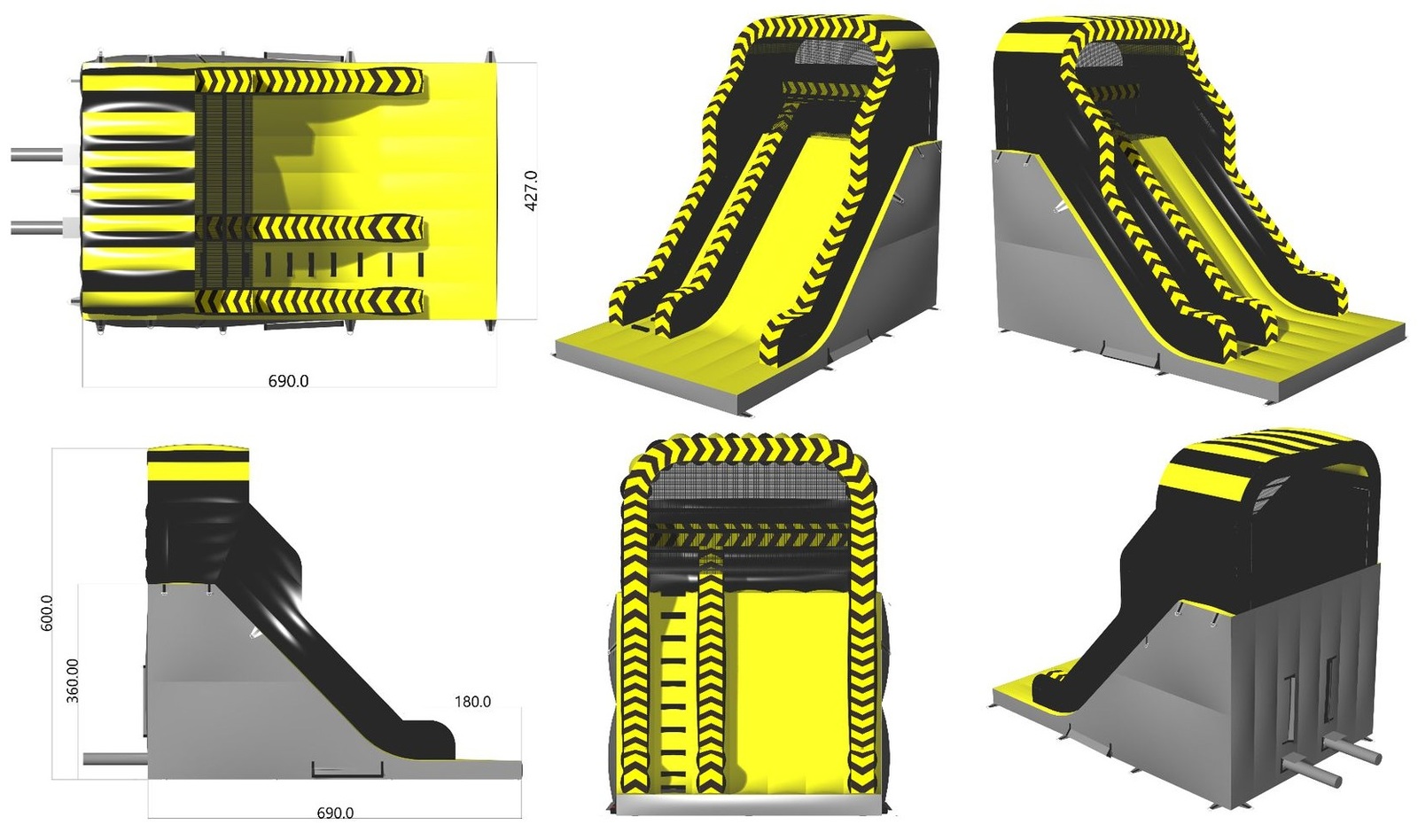 BBOL-037 - 25x15x20ft - Under 12ft platform - MEGA SLIDE - Hyper Slide - (Black, Gray & Yellow Chevrons)