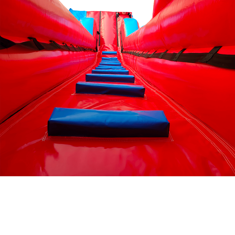 - The platform on this inflatable slide has been reduced in width by 60% to accommodate single-file use by children, reducing weight by approximately 45kg.