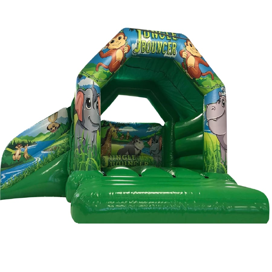 BB-023 - 15x16x9.5ft - A Frame Castle - Slide Combo - (Green Jungle)