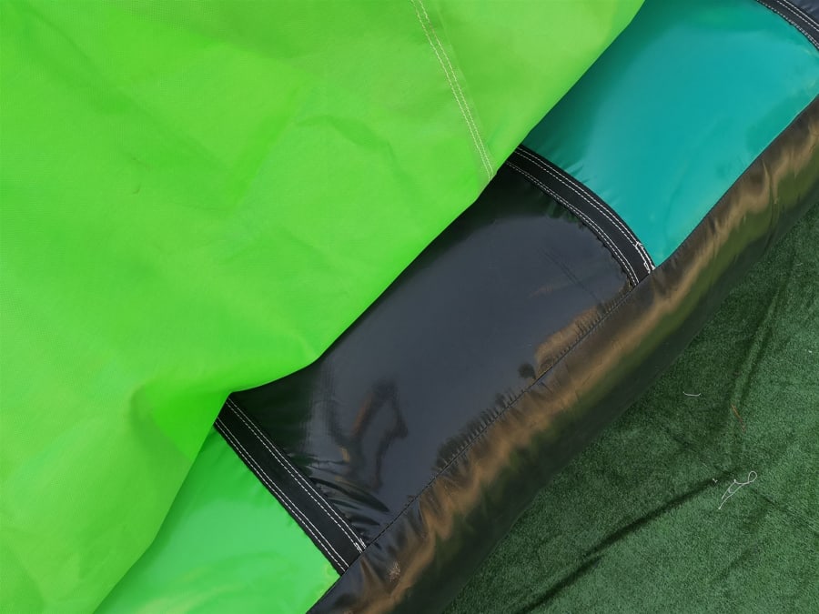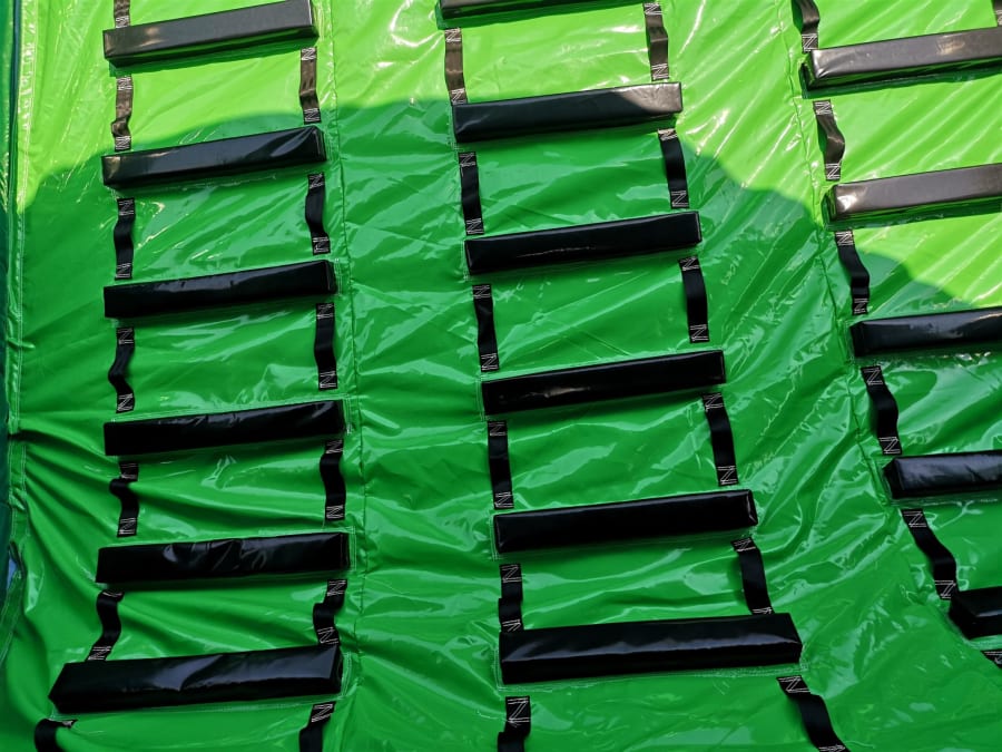 This is our Giant Obstacle Course, this splits into 2 separate pieces. Making it easier to set up and pack away. Our assault courses can be made in a variety of colours and a variety of art work can be applied at an additional cost. These are great and will last if looked after and maintained. the sections are fastened together using velcro tabs to make sure the user doesn't fall between each piece.