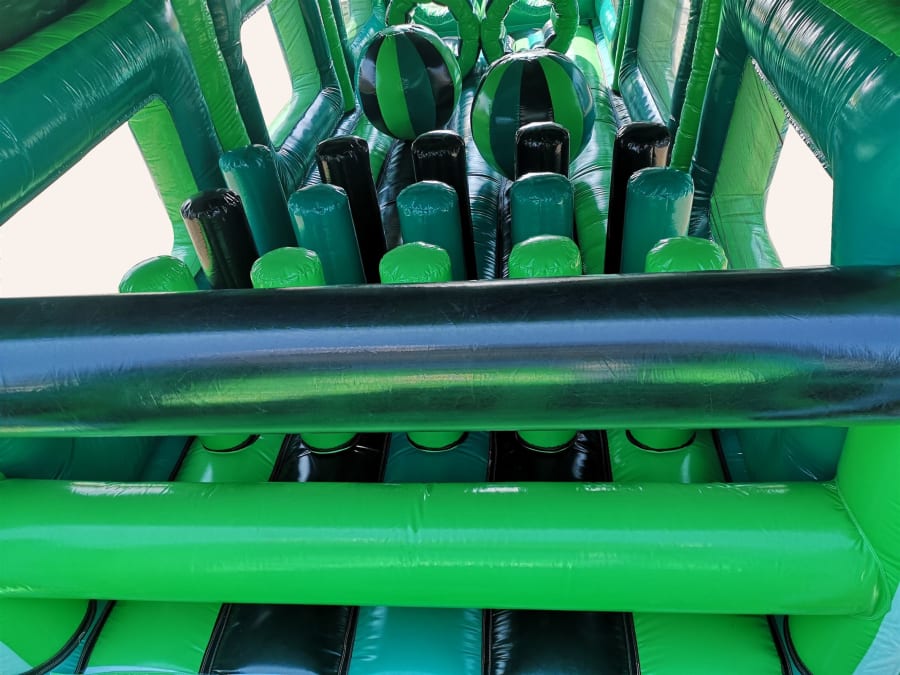 The all new inflatable obstacle course for hire measure in an eye watering 64ft in length making it a true event statement piece! 64ft is a brilliant length making it suitable for most pubs, clubs, schools, galas, scouts, cubs, guides and other community groups aiming to keep children entertained for longer periods of time than the standard bouncy castle for example.