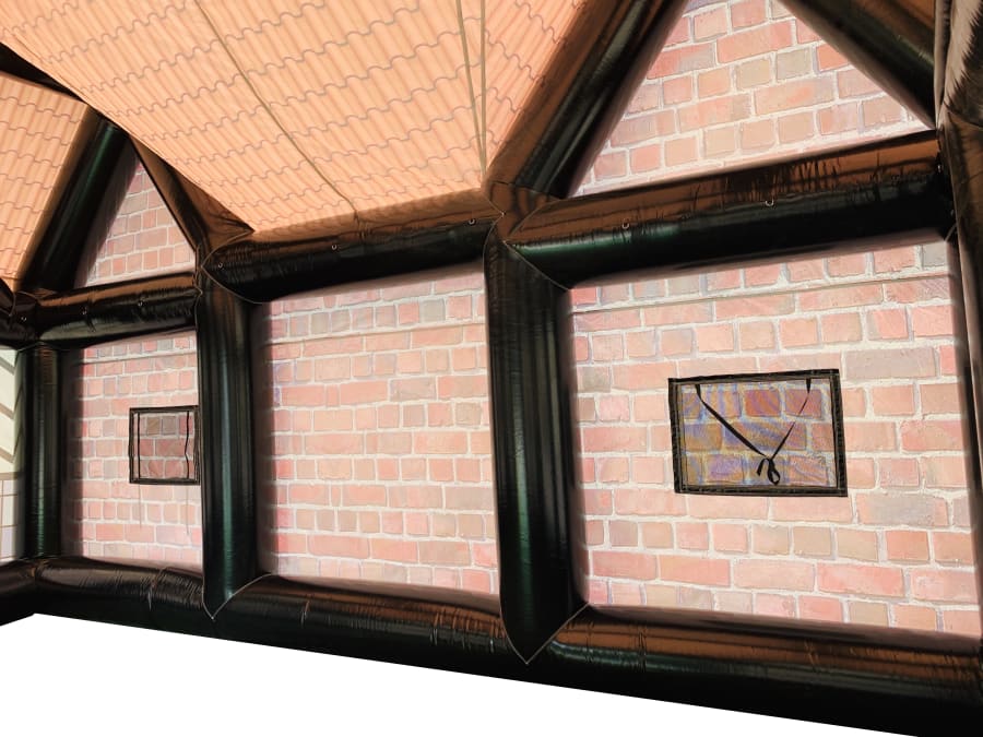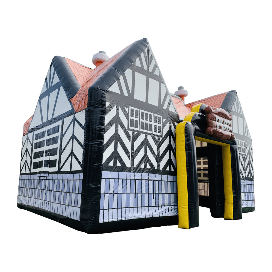 The Inflatable pub hire can cater for up to 50 people (standing) at any one time safely in total comfort. The inflatable pub for sale can be fitted to the front of traditional marquees creating a fabulous visual image that is both fun, novel and offers a practical solution for outdoor events and occasions.