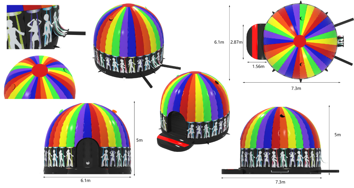 Say hello to the dome that ends all domes! This HUGE dome is the newest addition to the range and is already going down an absolute storm with those who just want to party the night away inside an inflatable disco! The new Party Pod is a Giant evolution of the ever popular standard Disco Dome. The Dome comes complete with a speaker pocket at the back to safety hide the music system away from small fingers yet still bellows the sound out into the dome.