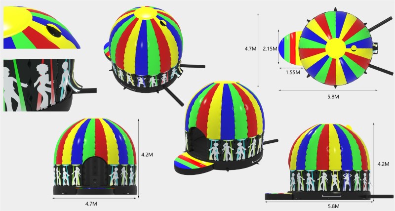 Say hello to the 3D disco dome from Betterbounce Direct. The disco dome has been a BB classic for almost 30 years. In fact it was named 007 because it was literally the 7th product we ever made way back in 1992! In 2016 we went 3D, Giving it a new double skin and allowing it to run from 1 single blower to create the product you see today. This dome is already going down an absolute storm with those who just want to party the night away inside an inflatable disco! The Dome comes complete with a speaker pocket at the back to safety hide the music system away from small fingers yet still bellows the sound out into the dome.