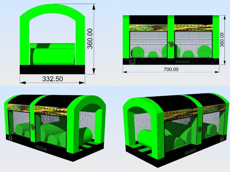 BBOL-051-C - 23x11x11.8ft - Build Your Own Giant Obstacle - Extension Piece C - (Green & Black Toxic)