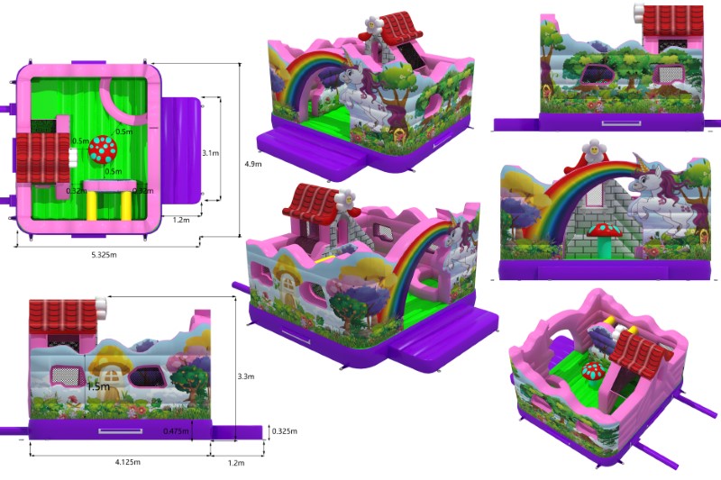 The slides roof features a special viewing tower for the little ones to get excited over and despite this, only measures at a modest 11ft yet making it perfect for indoor hire. The Unicorn artwork theme really is amazing and gives an extra vibrant feel to all other items in its class. The vibrant unicorn artwork is very realistic and absolutely fantastic quality, ensuring this inflatable slide is perfect to make your little one's big day