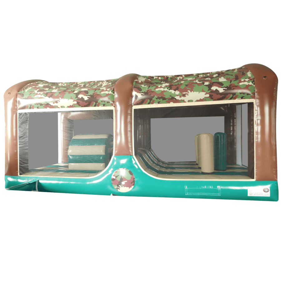 All extension pieces are designed to be located in the middle of the obstacle course and this exact listing is for 1x inflatable extension compromising of Crawl tunnel, crazy hump and biff and bash pillars in the middle. The peice is universal so can be rotated to aid with a quick and easy set up. The blower tubes are located next to one another to give a better set up on site in terms of blower and cable management.