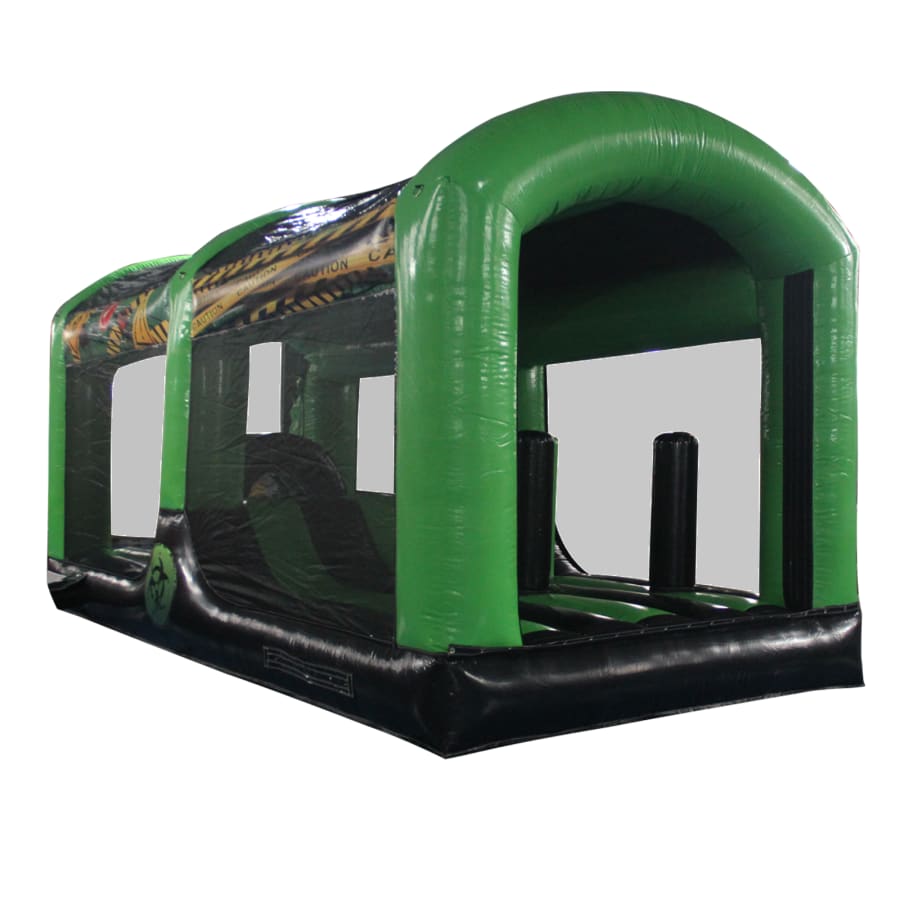 All extension pieces are designed to be located in the middle of the obstacle course and this exact listing is for 1x inflatable extension compromising of Crawl tunnel, crazy hump and biff and bash pillars in the middle. The piece is universal so can be rotated to aid with a quick and easy set up. The blower tubes are located next to one another to give a better set up on site in terms of blower and cable management.