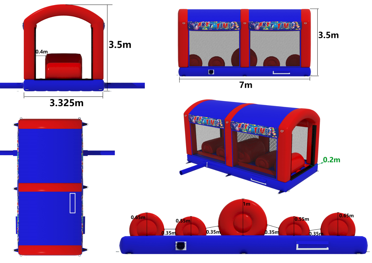 The artwork theme is absolutely fantastic and is the latest theme from our high adrenaline games range making it the perfect choice for your event. The overall height is only 11ft so its still suitable for large school sports halls, gymnasiums and large venues. The netted windows on the sides make parent or guardian supervision easy and ensure the users can be seen from all angled of the party or event for maximum safety.