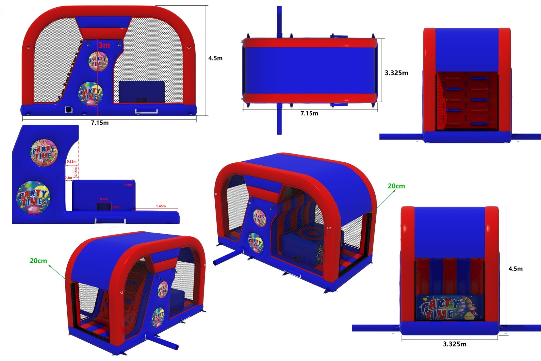 The artwork theme is absolutely fantastic and is the latest theme from our high adrenaline games range making it the perfect choice for your event. The overall height is only 11ft so its still suitable for large school sports halls, gymnasiums and large venues. The netted windows on the sides make parent or guardian supervision easy and ensure the users can be seen from all angled of the party or event for maximum safety.